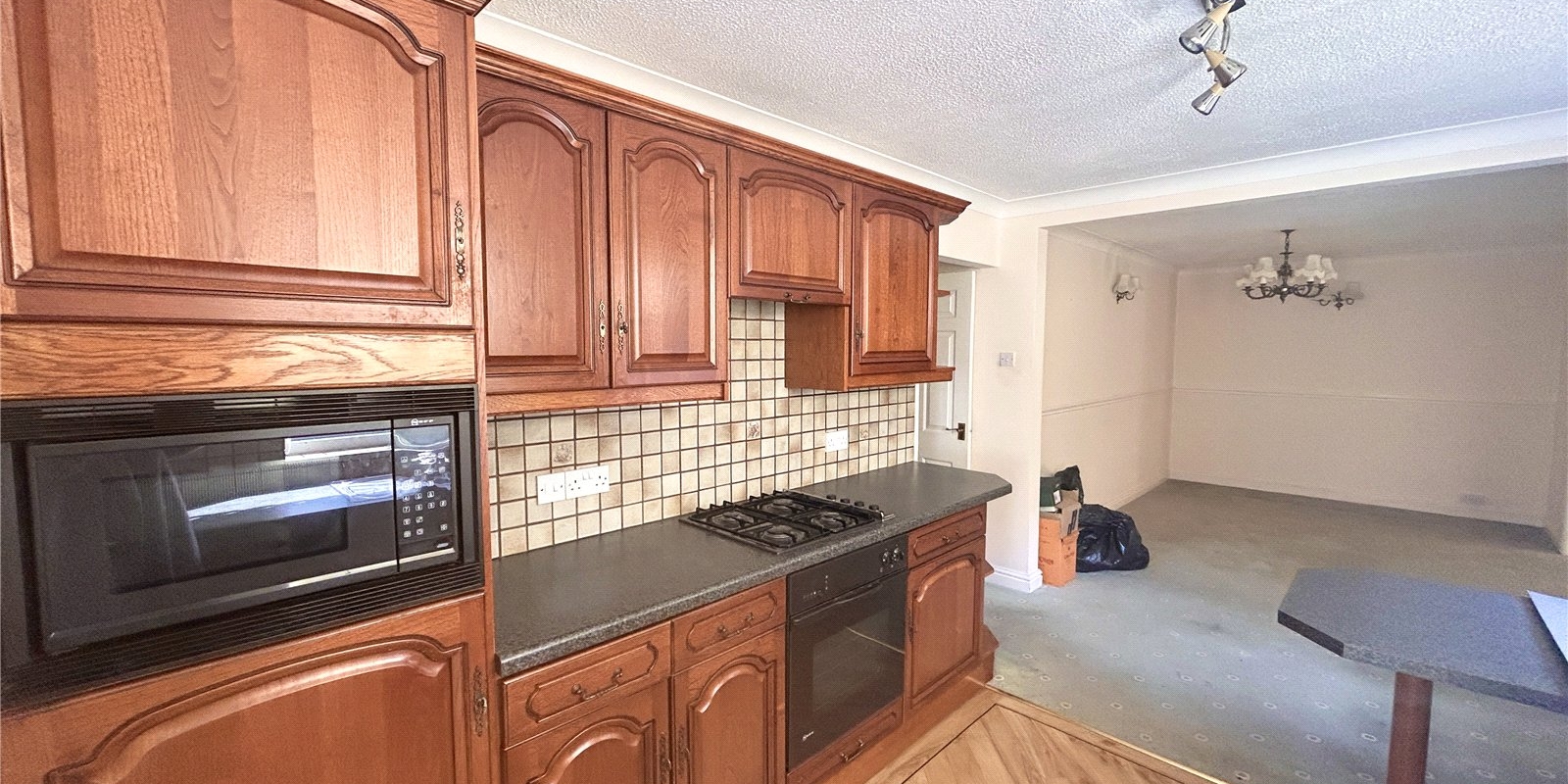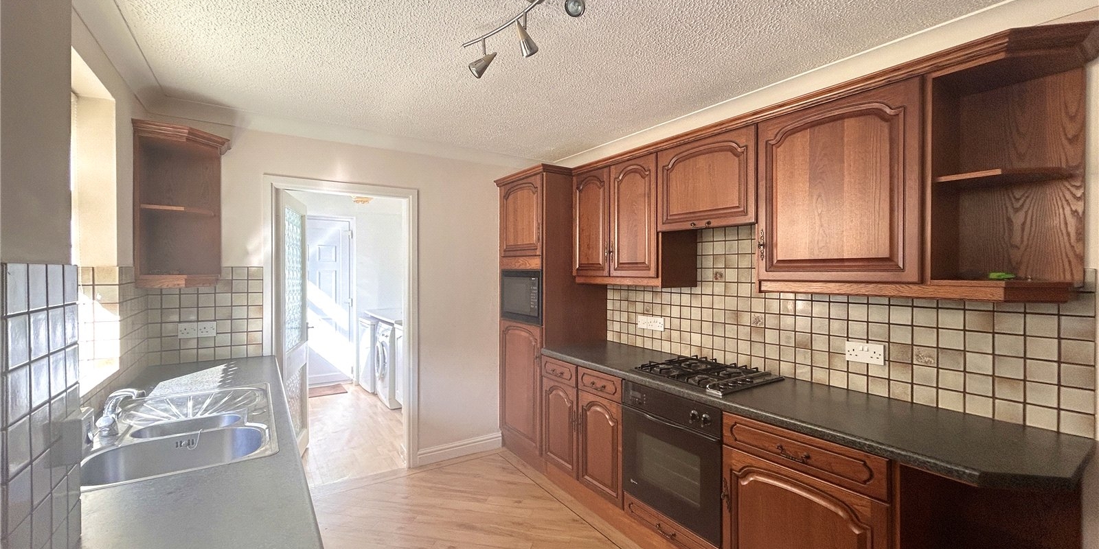 Upstairs, the master bedroom benefits from an en-suite shower room, while two further bedrooms are well-sized and share a contemporary family bathroom.