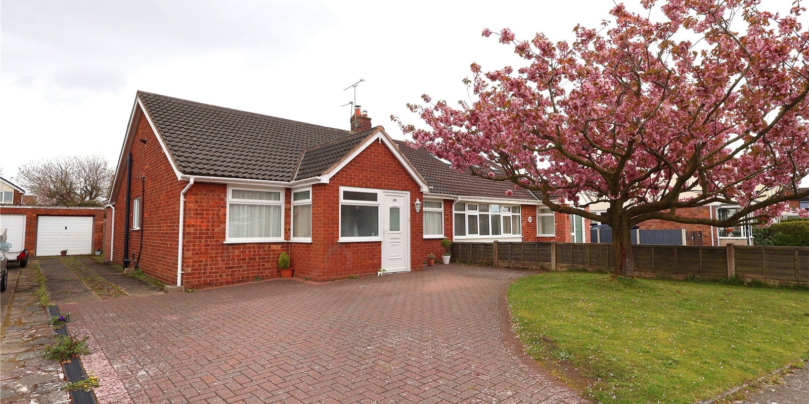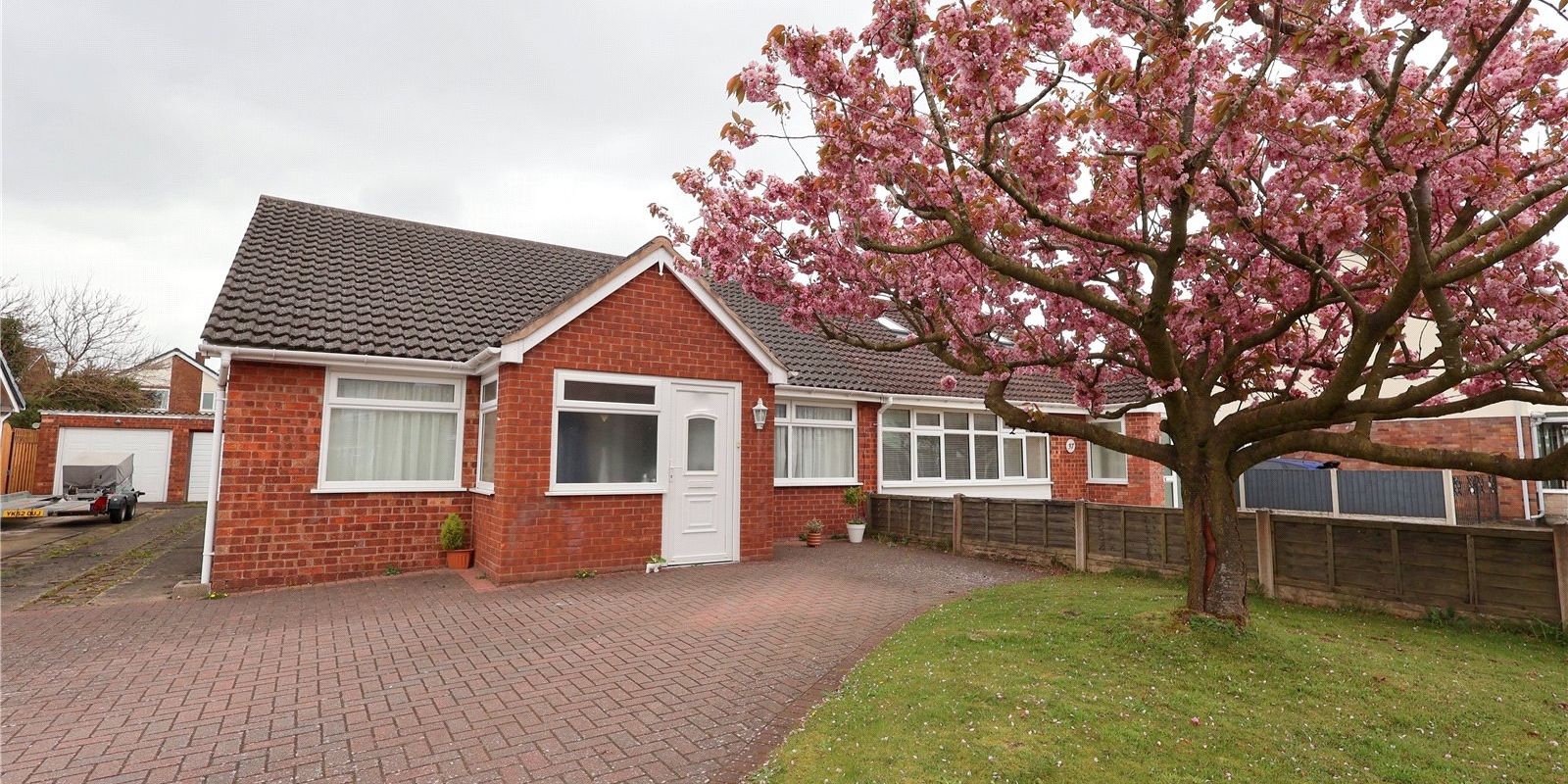 Outside, off-road parking and a picturesque cherry blossom tree adorn the front, while a garage to the side offers additional storage space.