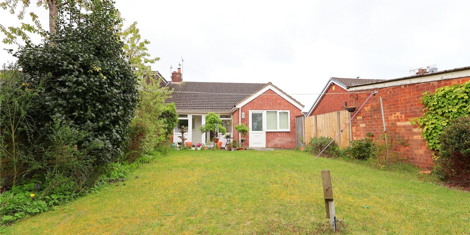 An inner hallway leads to two generously-sized bedrooms, with the rear room offering direct access to the lush gardens, perfect for enjoying the outdoors in privacy.