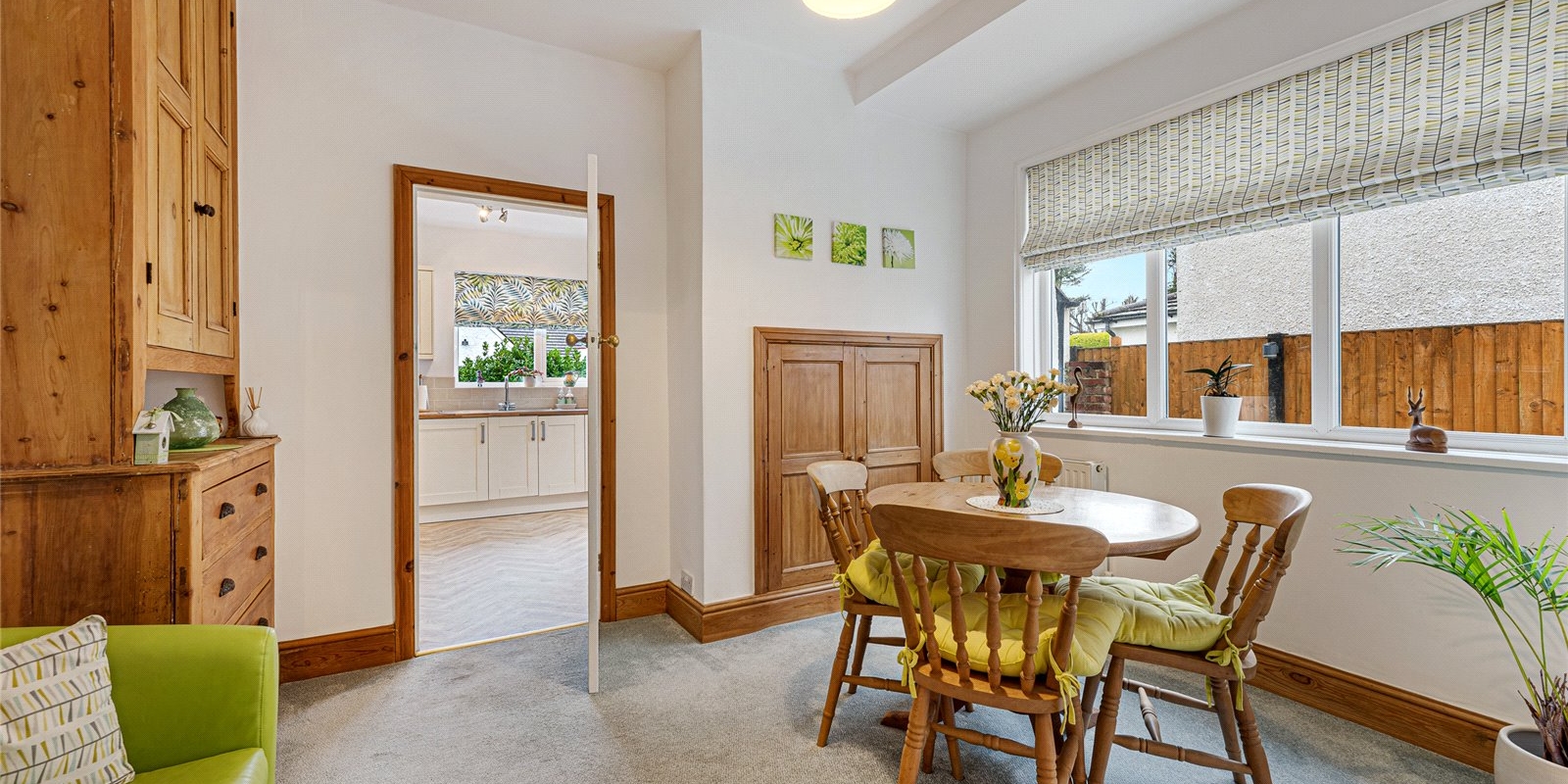 The modern kitchen is both stylish and functional, complemented by a separate breakfast room—perfect for casual family meals. A convenient downstairs WC is discreetly located under the stairs.