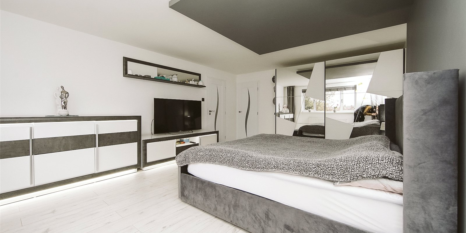 Upstairs, the property offers four well-proportioned bedrooms. The master bedroom benefits from an en-suite shower room and boasts a stand alone bathtub making it the largest bathroom in the home, this room also benefits from a suspended ceiling feature with LED lighting and large built in wardrobes with mirrored sliding doors. The remaining bedrooms are served by a sleek family bathroom. The layout ensures comfortable living for families of all sizes, with plenty of natural light throughout.