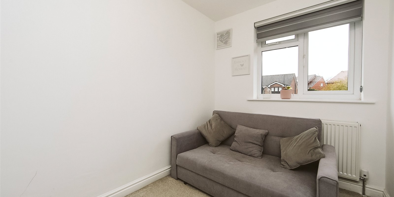 Outside, the property boasts a beautifully landscaped rear garden, boasting a low maintenance artifical laid lawn and offering a private and tranquil outdoor space ideal for summer dining and relaxation. To the front, there is ample off-road parking and access to the garage that has recently benefited from a new door.