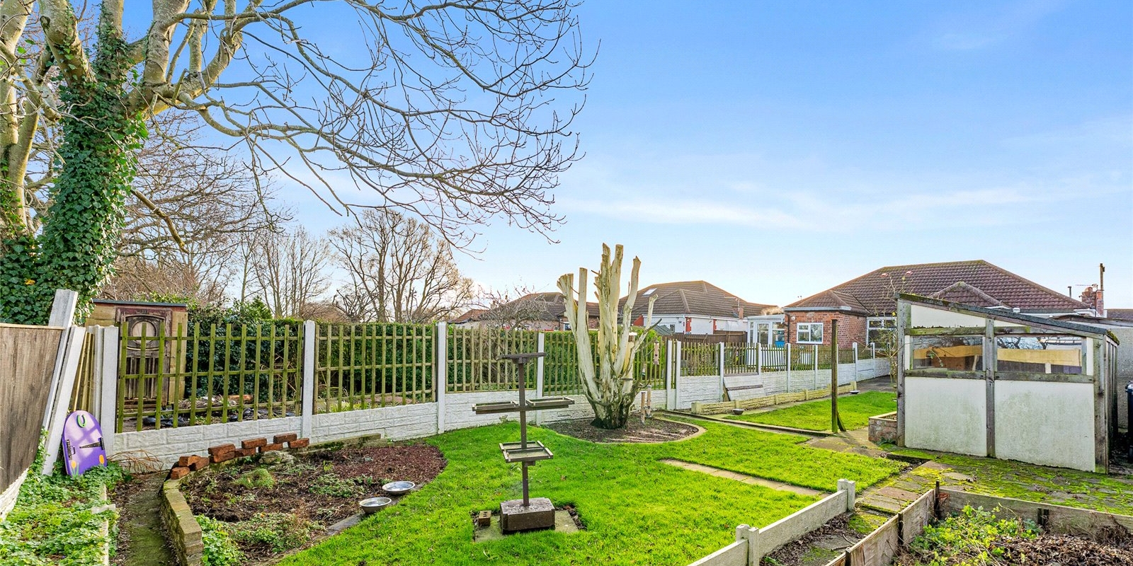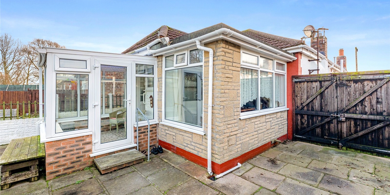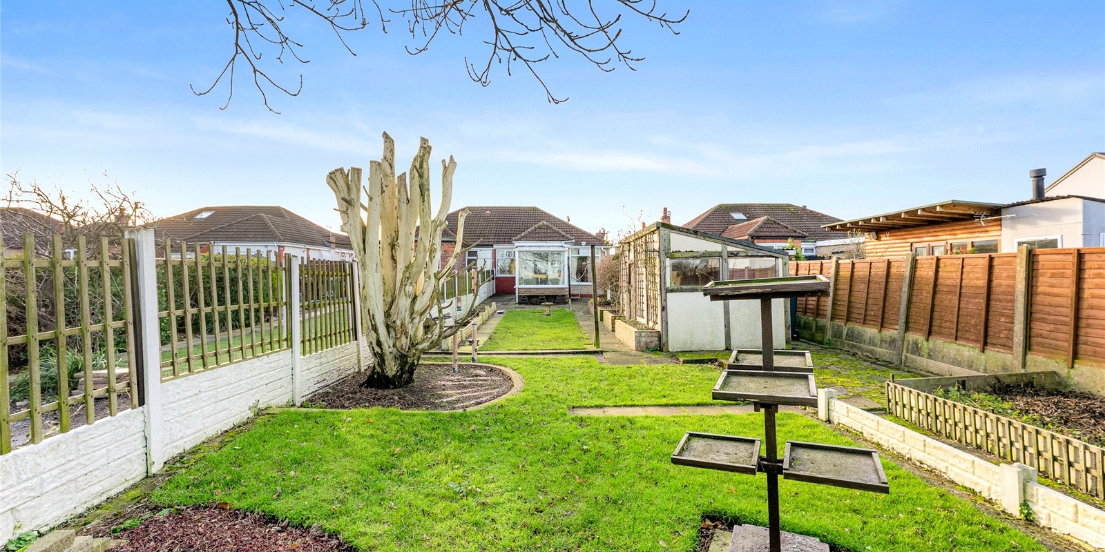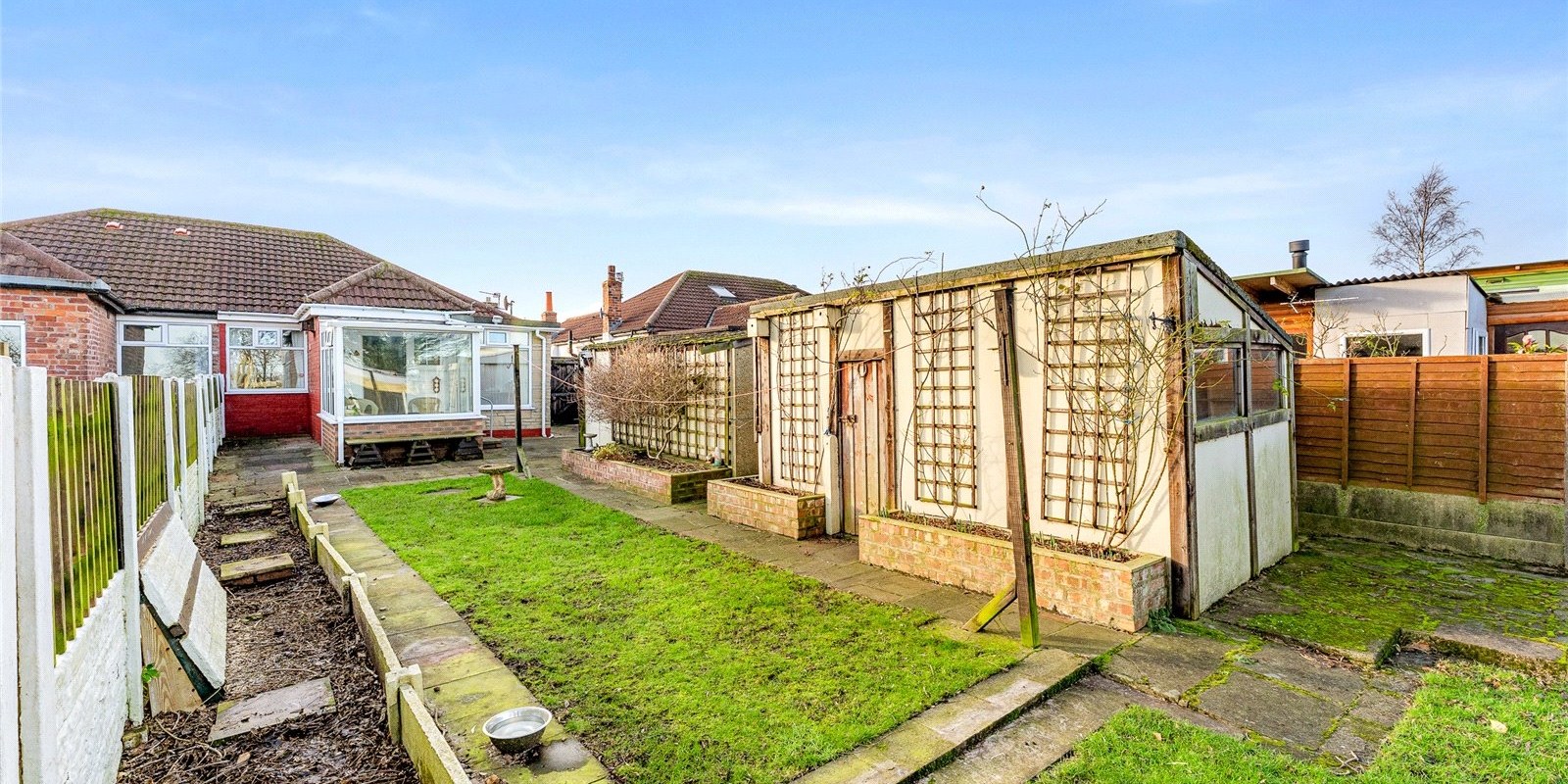 The property is approached via a welcoming frontage and opens into a characterful front lounge, beautifully enhanced by an attractive bay window that allows natural light to pour in. This versatile room could equally serve as an additional bedroom, making the layout adaptable to a range of needs. Beyond this, the bungalow offers a further two well-proportioned double bedrooms, both enjoying a pleasant outlook with ample space for furnishings.
