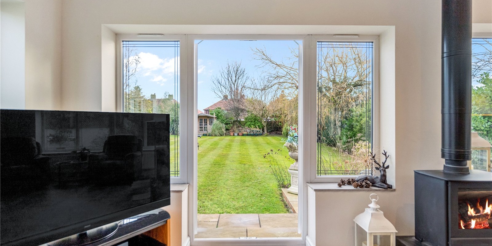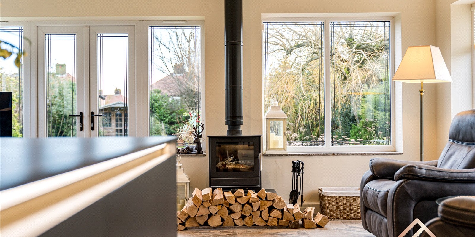 The living space is warm and inviting, centred around a beautiful log burner, creating a cosy yet stylish focal point. The property has been fully rewired throughout and benefits from double glazing, offering peace of mind and comfort. The property further benefits from a separate reception room, offering a wonderful additional living space. This room features a fireplace, creating a cosy and inviting atmosphere, and French doors that open directly onto the garden, allowing natural light to flood in and providing seamless indoor-outdoor living.