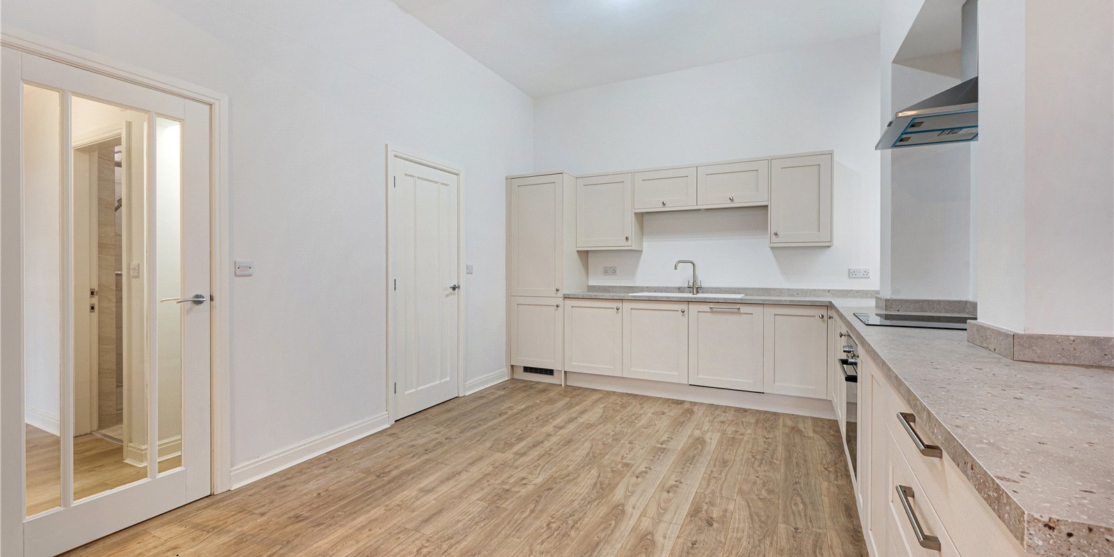 The property has been tastefully updated throughout and is ready to move straight into. Internally, the accommodation comprises a bright and spacious open-plan kitchen and living area, finished to a high standard and featuring a modern fitted kitchen with integrated appliances, including a Bosch oven and hob, and Hotpoint fridge freezer, washing machine and dishwasher. The living space also offers direct access to a private patio, perfect for relaxing or enjoying a morning coffee.