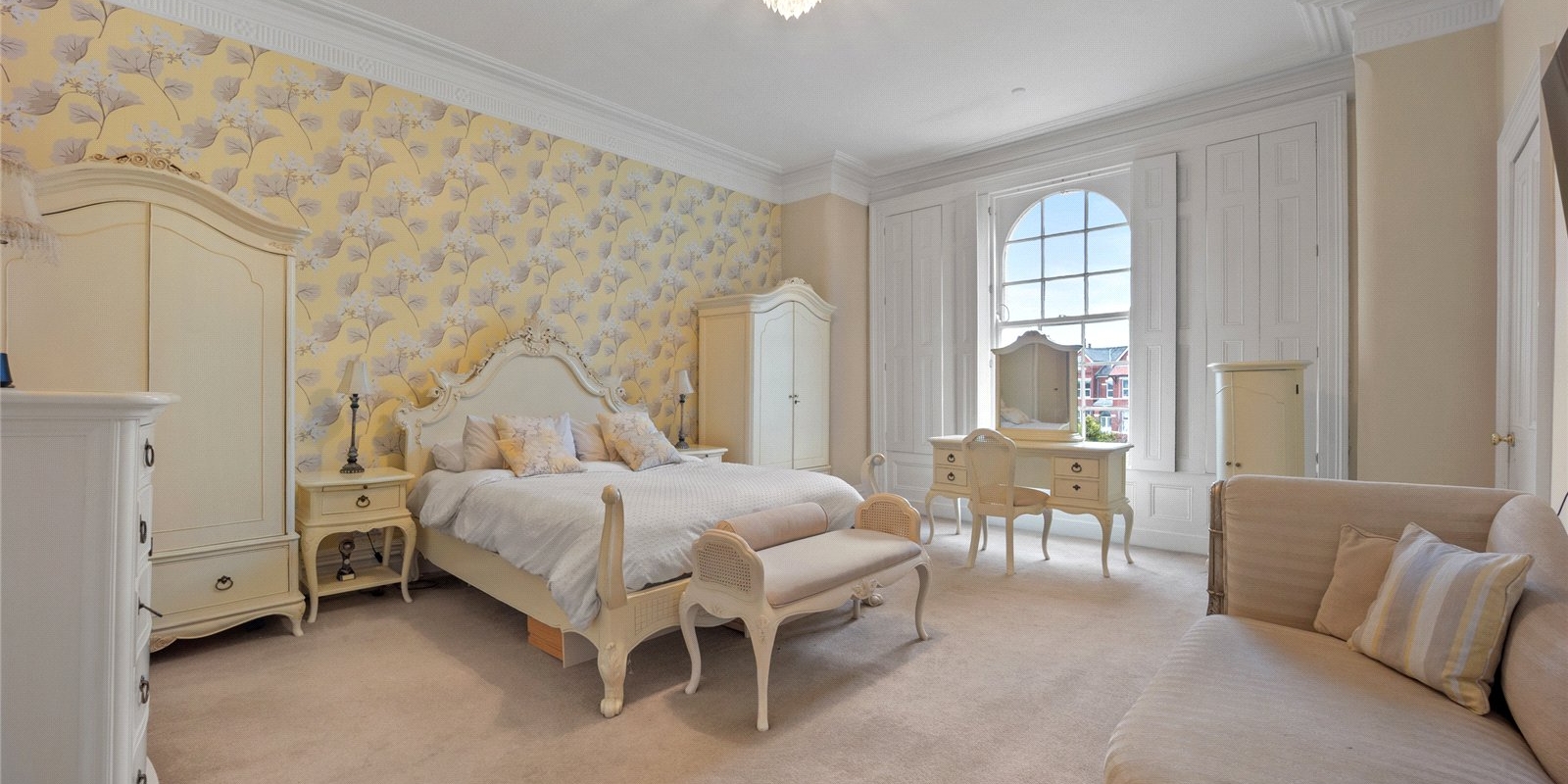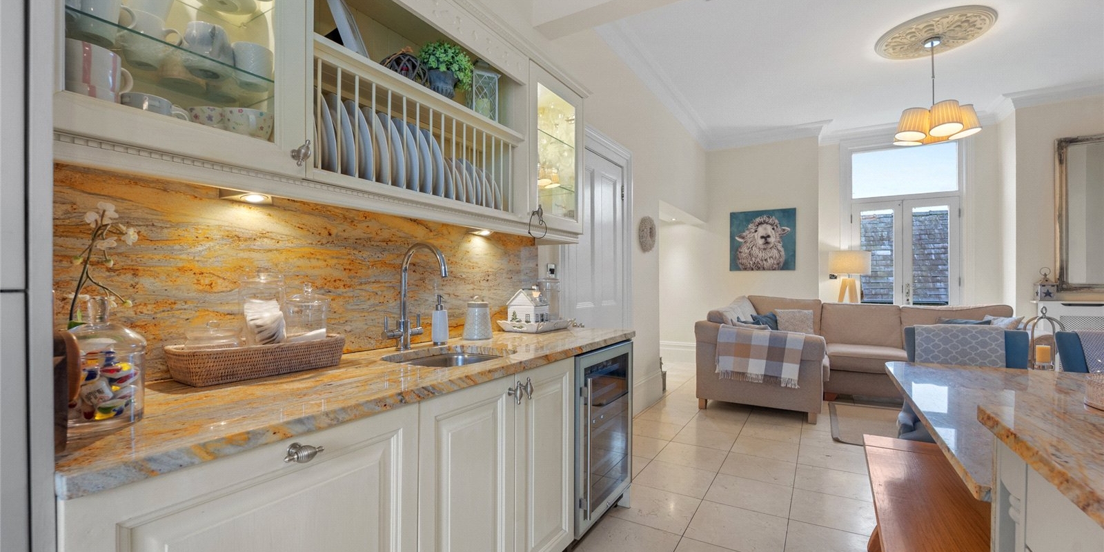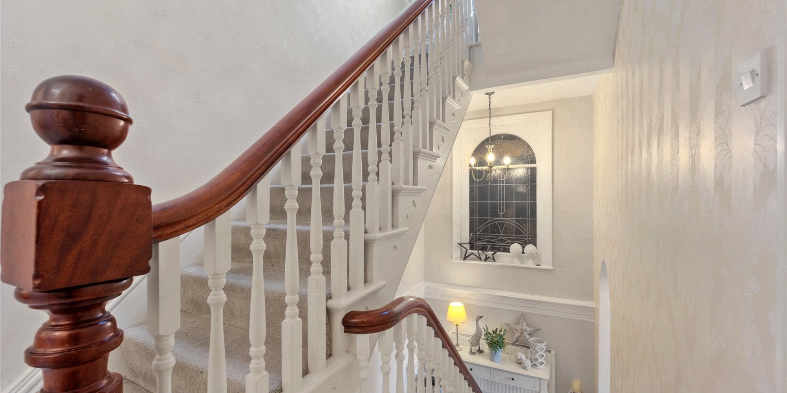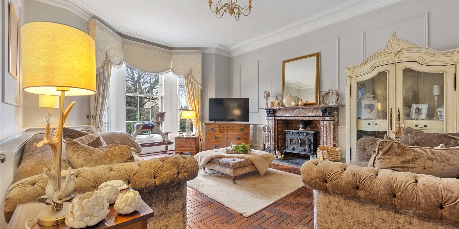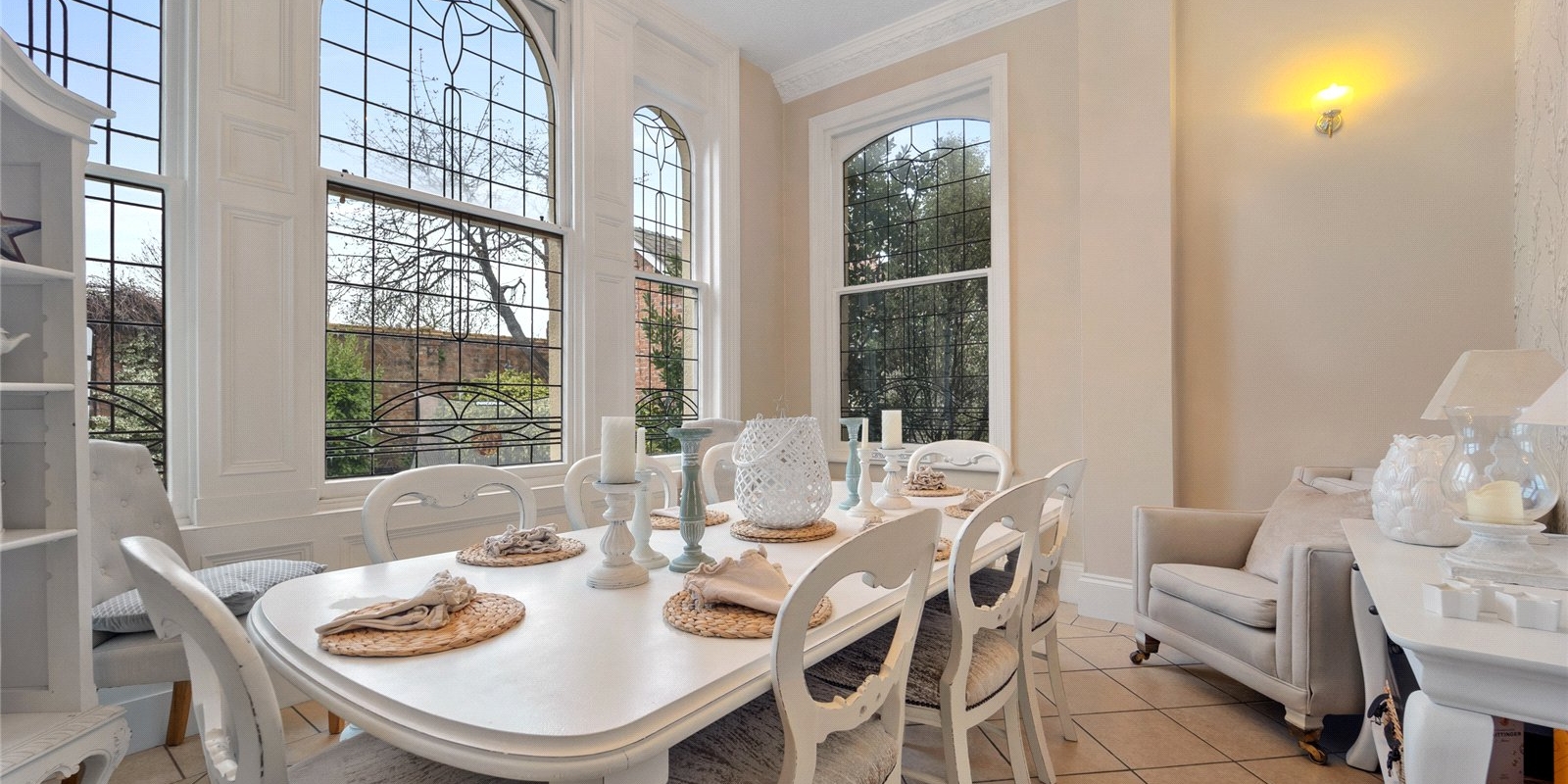 From the moment you step inside, the property exudes charm and sophistication. Original stained glass features, decorative wall panelling, and large light-filled windows create an atmosphere of understated luxury, while the interiors have been thoughtfully curated with tasteful décor and high-quality finishes throughout.