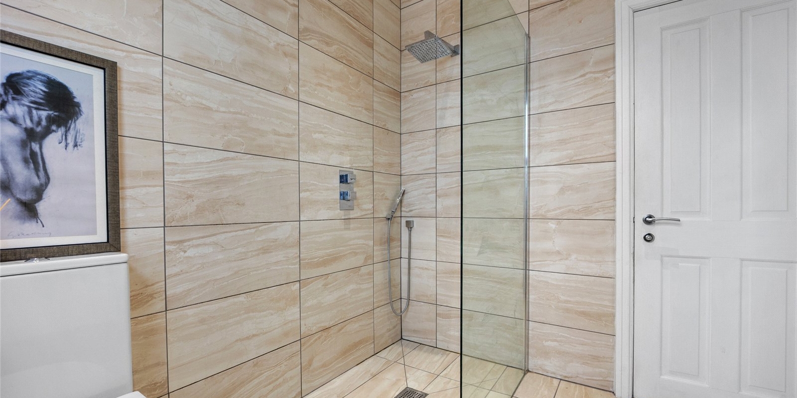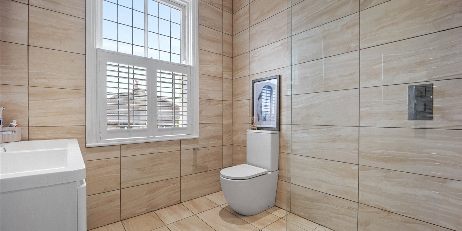 Ascending to the first floor, you will find three beautifully presented bedrooms, including a luxurious principal suite complete with a contemporary en-suite bathroom featuring a sleek walk-in shower. The family bathroom is finished in calming neutral tones and offers both a freestanding bath and in the second family bathroom is a separate shower, creating a relaxing environment.