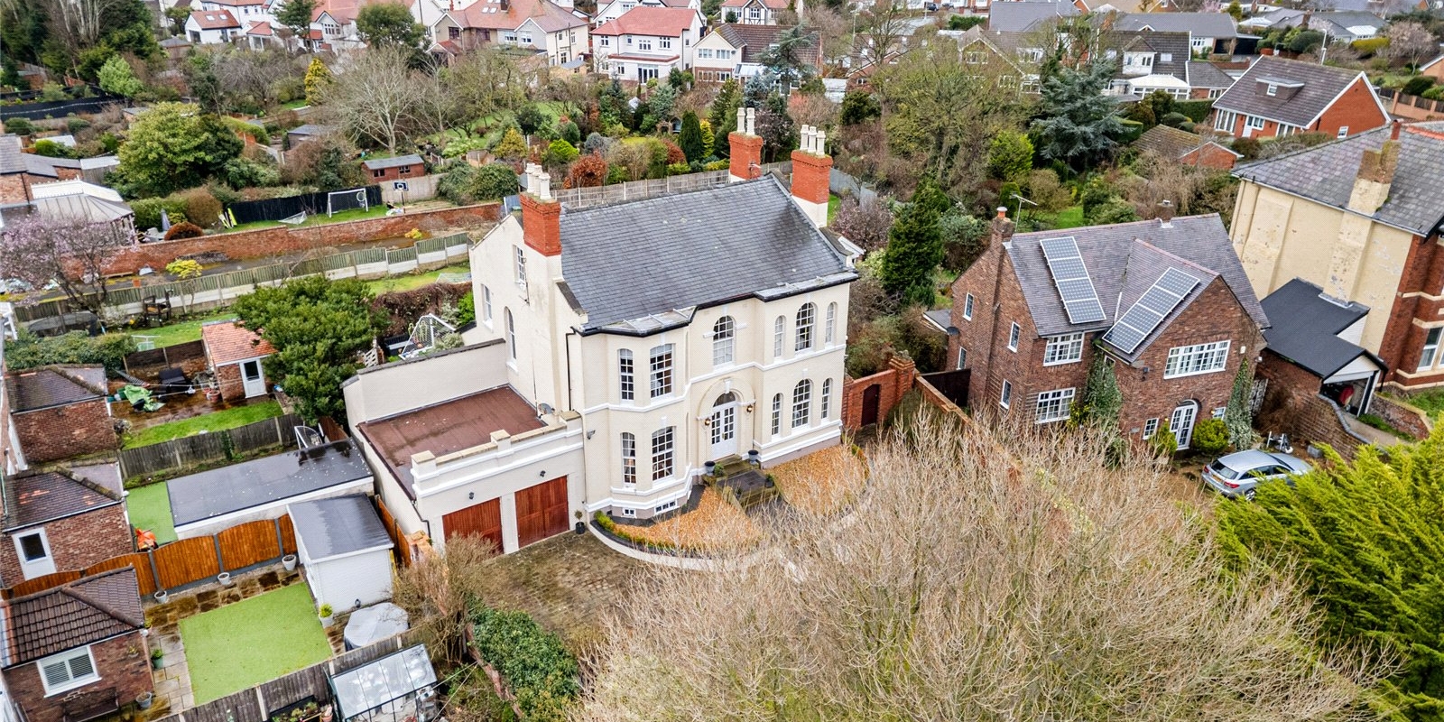 Set behind secure gates with a private driveway perimetered by lamp posts and greenery, this truly outstanding detached residence offers an exceptional opportunity to acquire a distinguished and beautifully appointed family home. Arranged over three impressive floors, the property seamlessly blends timeless character with refined contemporary living, creating a home of remarkable warmth, elegance, and versatility.