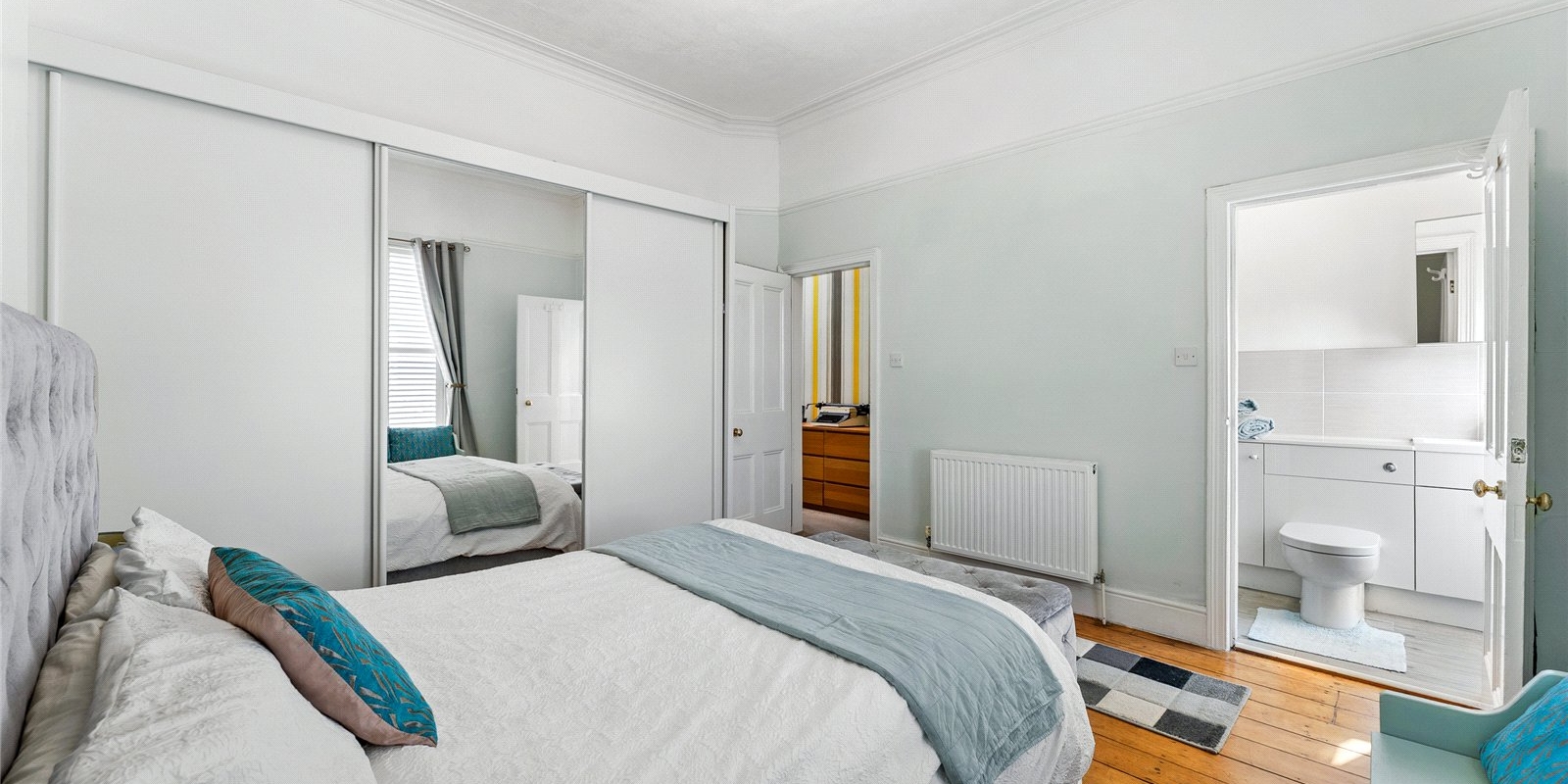 The first floor accommodates four well-proportioned double bedrooms, all benefiting from excellent natural light. The principal bedroom is particularly impressive, featuring a stylish modern en-suite shower room. The remaining bedrooms are served by a contemporary family bathroom, complete with a bath and overhead shower.
