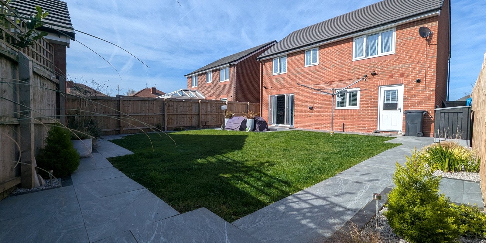 Externally, the property enjoys beautifully landscaped gardens to both the front and rear, recently completed to a high standard, featuring high-quality porcelain paving which enhances both the aesthetic and durability of the outdoor space. The rear garden provides an ideal setting for relaxing or entertaining, while the front garden adds to the property’s excellent kerb appeal. A driveway and integral garage provide ample off-road parking and storage.
