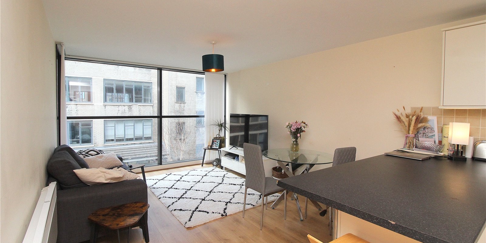 The property is available with no onward chain, a secure car parking space for residents only and briefly comprises; secure communal entrance hall with intercom entry system, lift and stairs to all floors, entrance hall with storage, open plan lounge/kitchen with integrated appliances, two double bedrooms and a modern three piece family bathroom. Accessed via the lounge is a generous L shape balcony, ideal for al fresco dining. Internal inspection comes highly recommended by the agent. NO CHAIN.