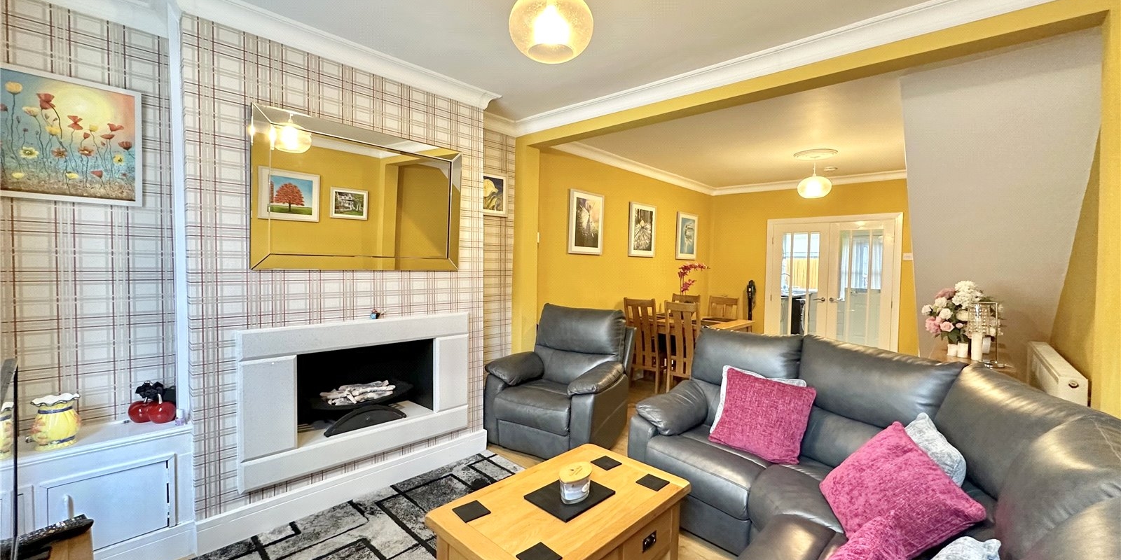 Upon entering, you're greeted by a spacious open-plan lounge diner, accentuated by a feature fireplace, providing a warm and inviting atmosphere for both relaxation and entertaining. The modern kitchen boasts integrated appliances, ensuring a sleek and functional space for culinary endeavors.