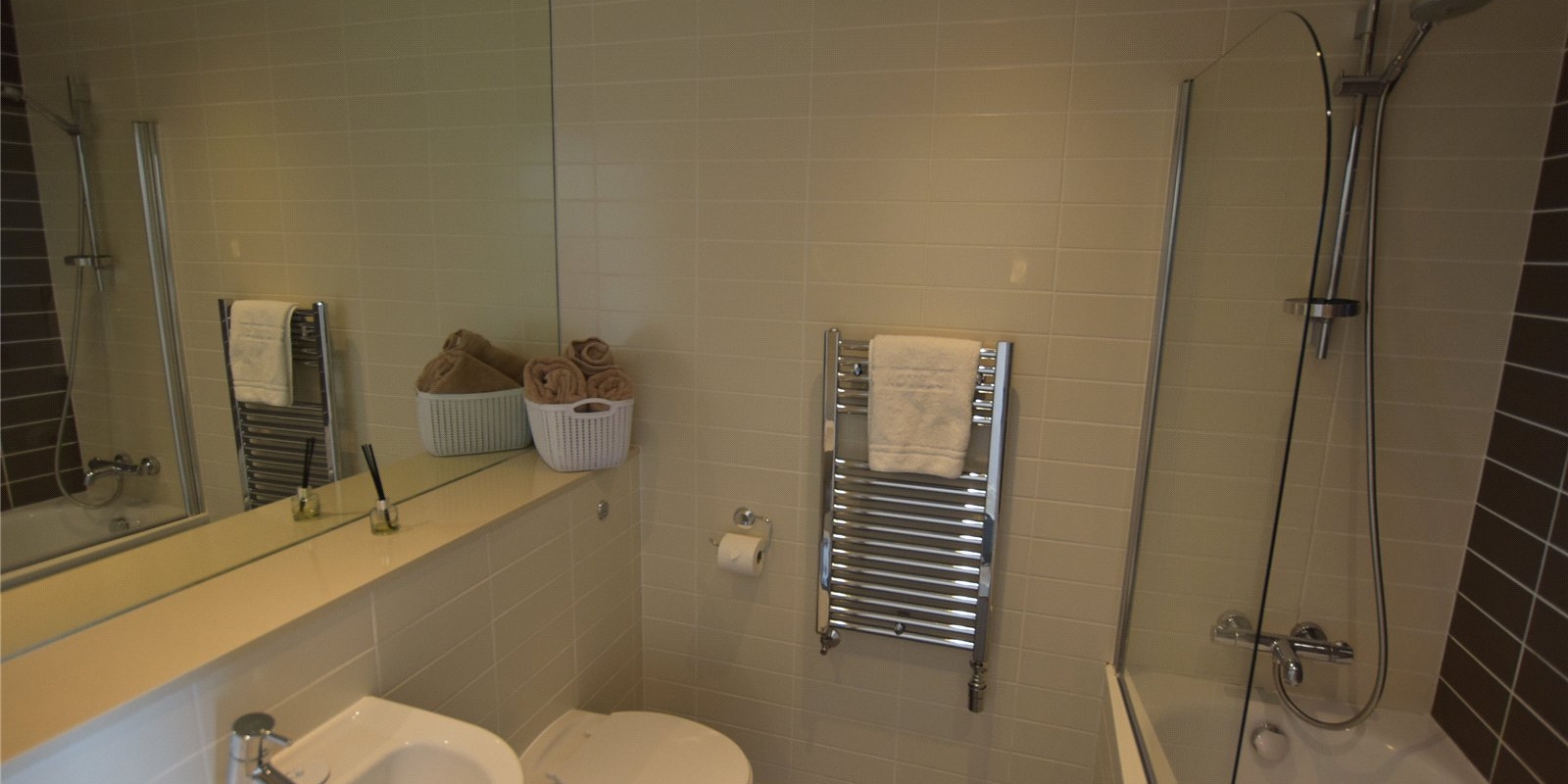 The apartment boasts a generous double bedroom, offering a serene retreat with ample storage space. The contemporary three-piece family bathroom is tastefully finished, providing a touch of elegance to your daily routine.