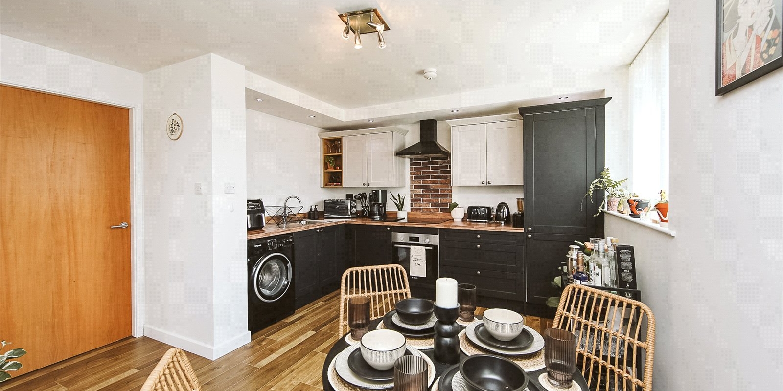 The apartment features two well-proportioned double bedrooms, both tastefully decorated and offering a warm, inviting atmosphere—perfect for rest and relaxation. The bright and airy living area flows seamlessly into a contemporary fitted kitchen, complete with quality appliances and ample counter space, ideal for entertaining or casual dining.