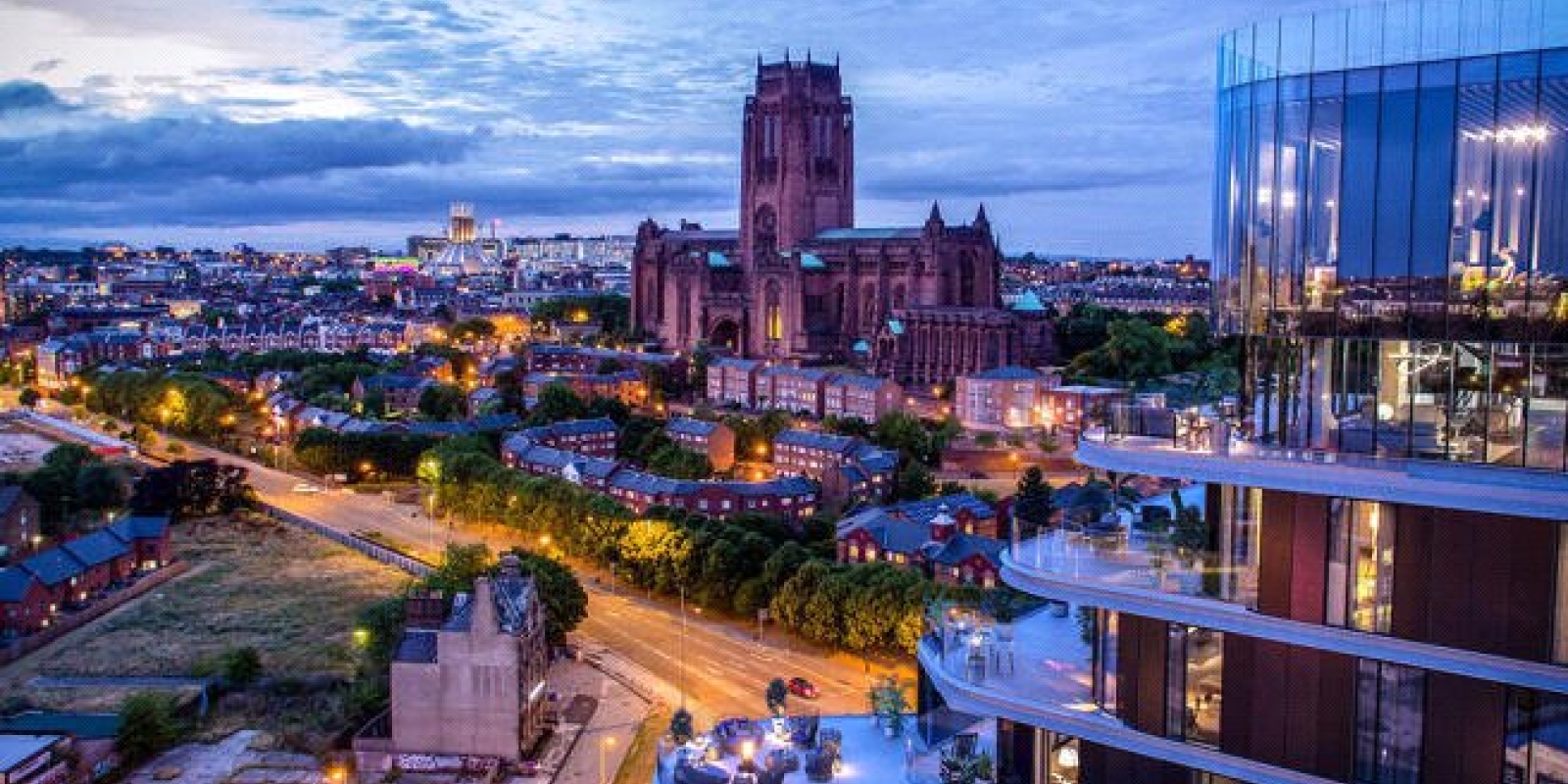 The apartment features eco-friendly technology, premium finishes, and floor-to-ceiling windows offering stunning views across the Liverpool skyline.