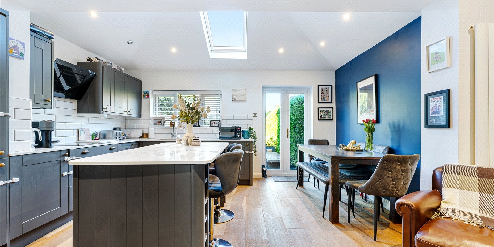 Upstairs, the property offers three well-proportioned bedrooms, each providing comfortable accommodation for families, guests or homeworking. A modern family bathroom completes the first floor, finished to a high standard and designed for everyday convenience.