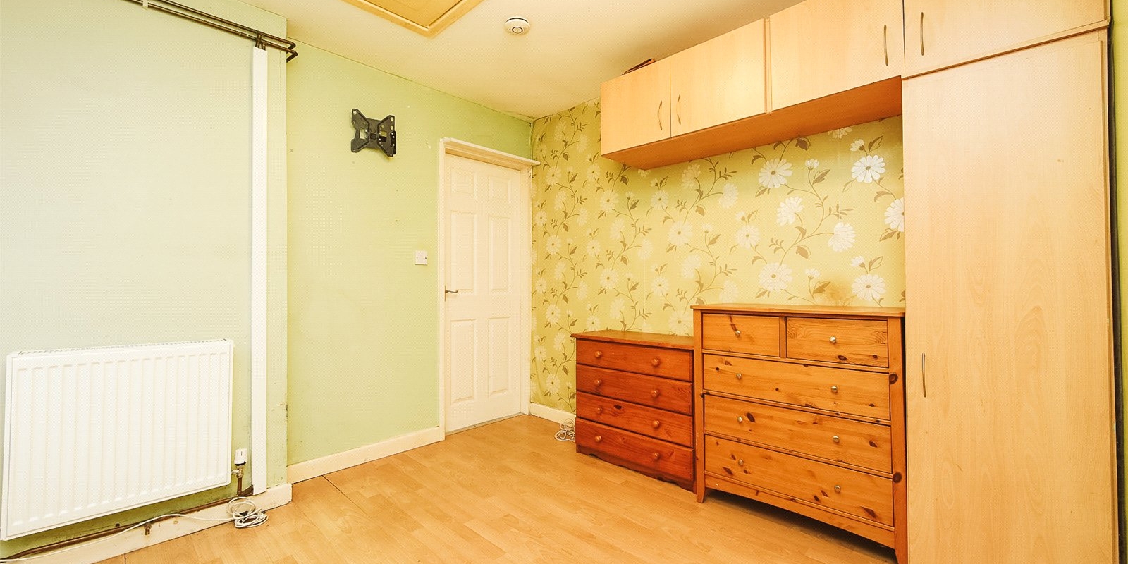 Upstairs, there are three well-proportioned bedrooms. The family bathroom is fitted with a bath, wash hand basin, and WC, finished with part-tiled walls for easy maintenance.