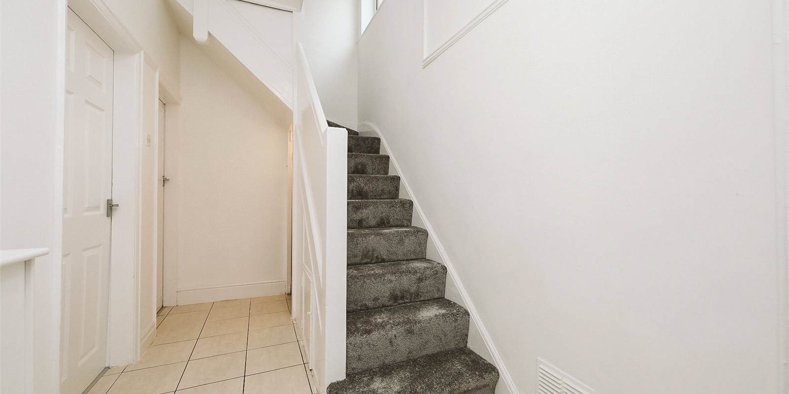 Upstairs, you’ll find three generously sized bedrooms, all bright, airy, and newly carpeted. The family bathroom is finished to an exceptional standard, featuring contemporary tiling, a full-size bath with shower, and premium fittings.