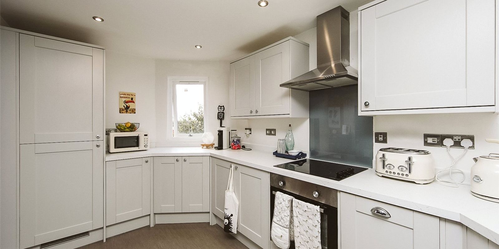 Generous, separate fitted kitchen – larger than typically found in similar flats, with ample storage and workspace. Integrated appliances included.