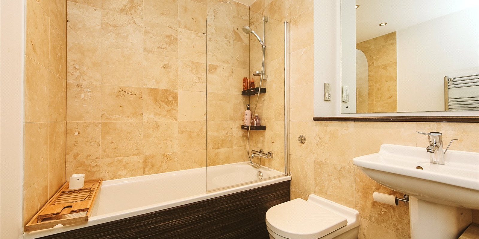 Modern bathroom with shower over bath