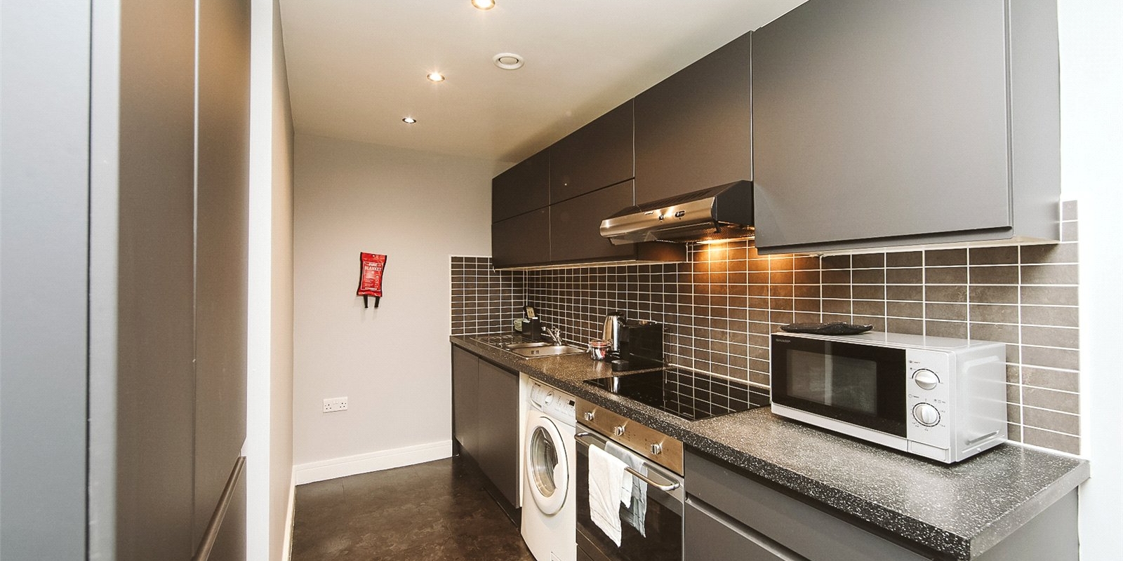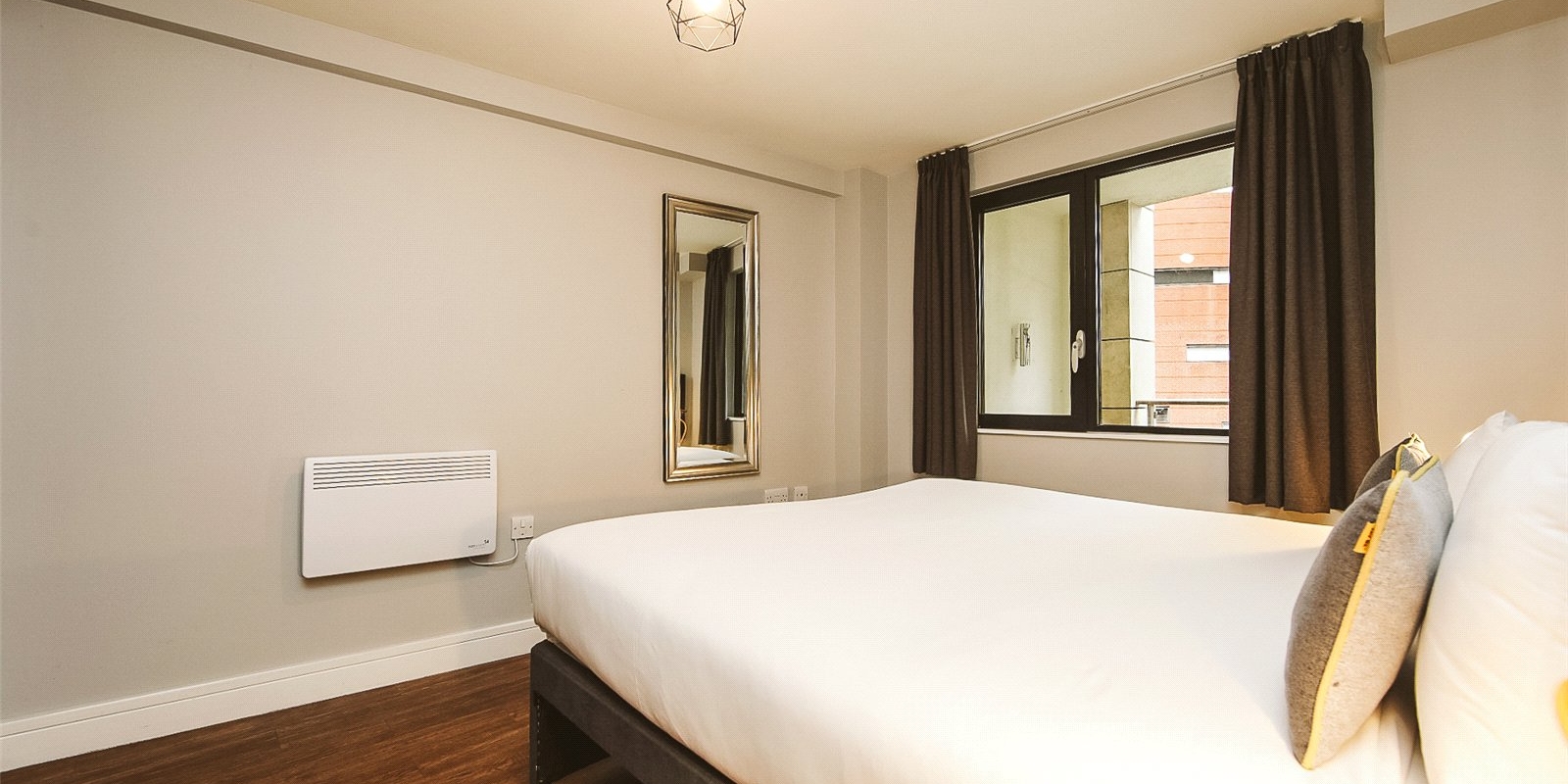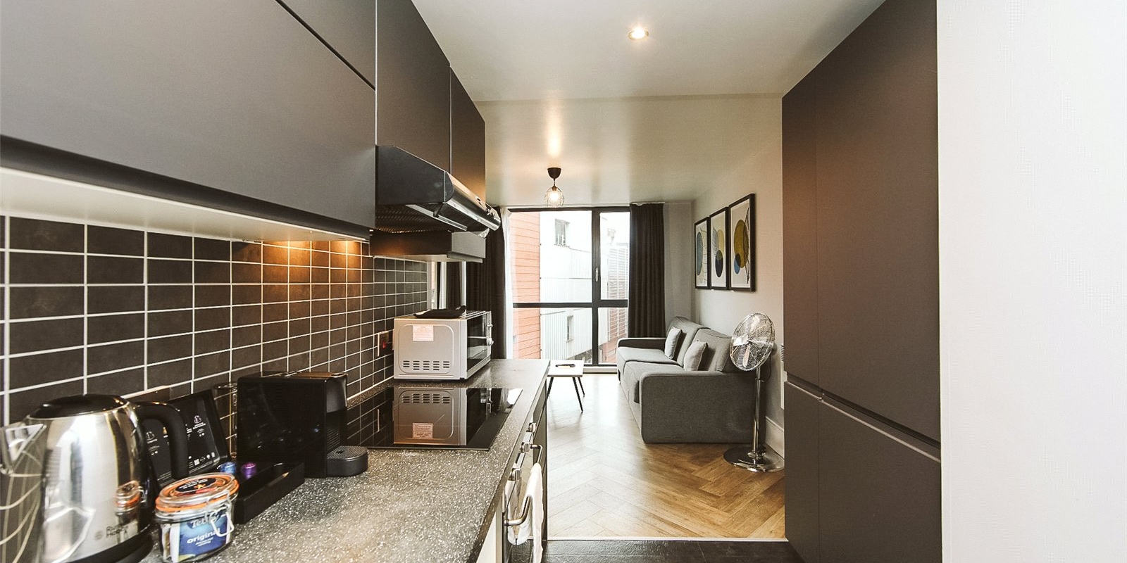 Located in the heart of Liverpool City Centre, this stylish one-bedroom flat offers modern urban living just moments from Liverpool One and Central Station. Situated on the upper floor of a secure development, the property features a bright open-plan living space with floor-to-ceiling windows, a contemporary kitchen, and a partitioned bedroom area.