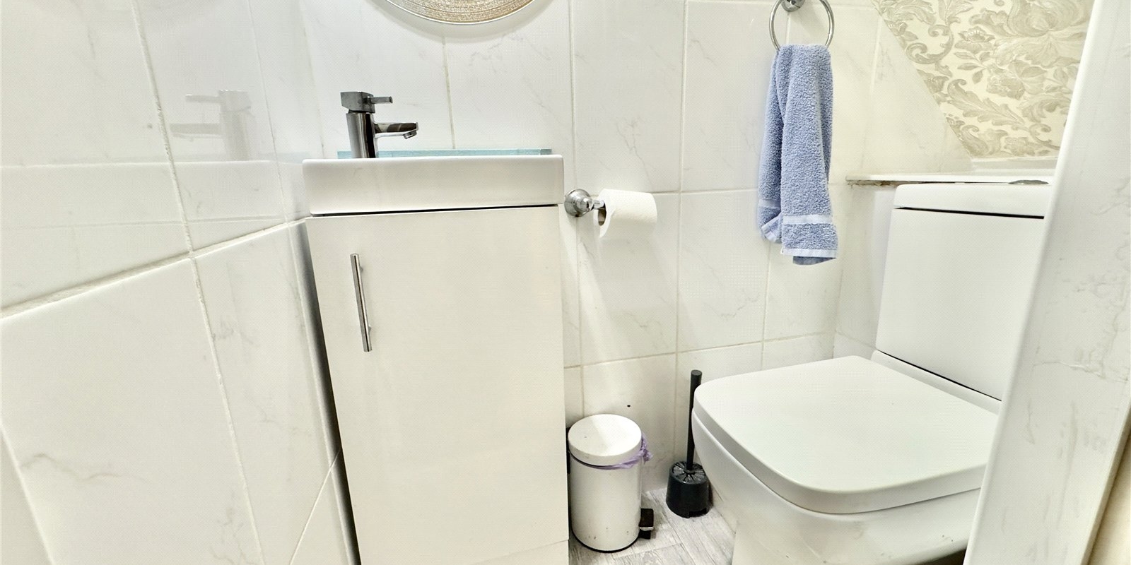 Upstairs, the property continues to impress with three well-sized bedrooms, including two spacious doubles and a third room suitable as a child’s bedroom, home office, or dressing room. A family bathroom and separate WC serve the upper floor, alongside a landing with built-in storage.