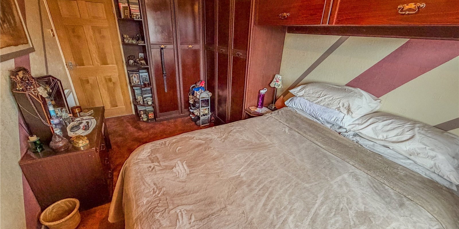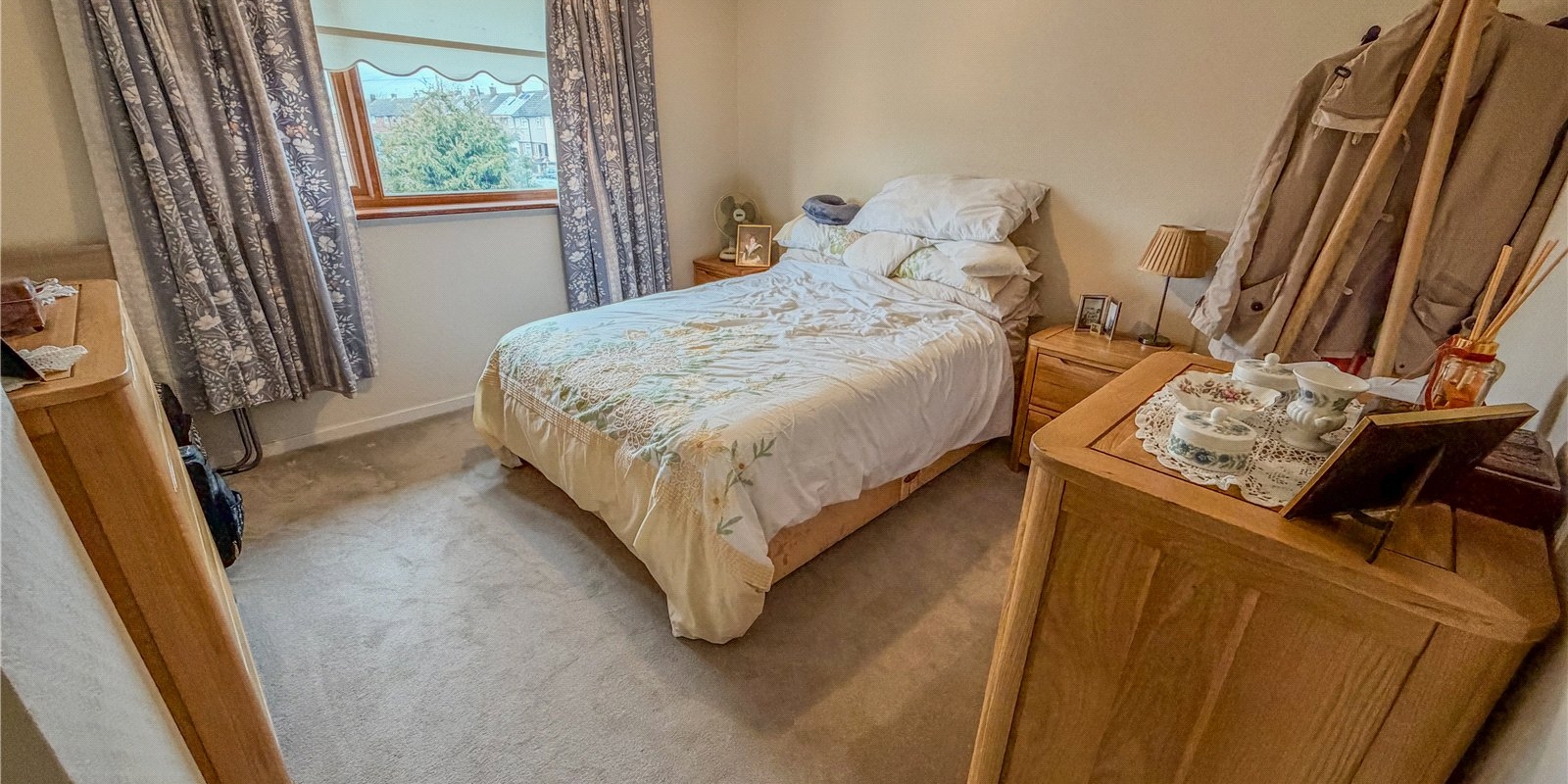 Upstairs, the property features three well-proportioned bedrooms. The main bedroom is a generous double, while the second bedroom also accommodates double furnishings comfortably. The third bedroom works well as a child’s room, study or dressing room, giving buyers flexibility depending on their lifestyle. The family bathroom includes a three-piece suite and provides a clean, functional environment with room for updating to personal taste.