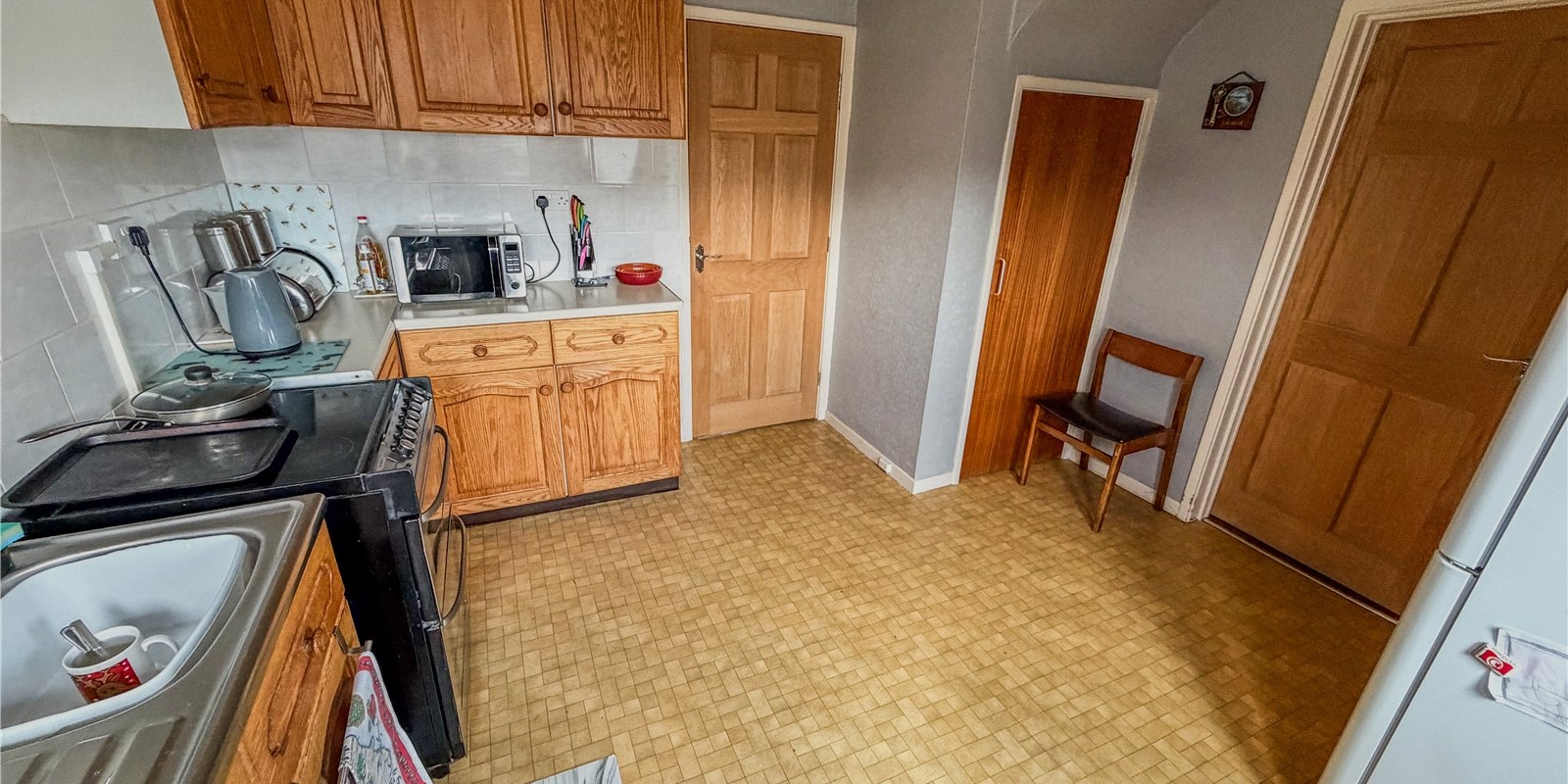 To the rear, the kitchen provides a practical and functional space with plenty of scope for personal touches. It offers direct access to the garden, creating a natural flow between indoor and outdoor areas and making it convenient for day today use. The layout lends itself well to future improvement should a buyer wish to enhance or reconfigure the space over time.