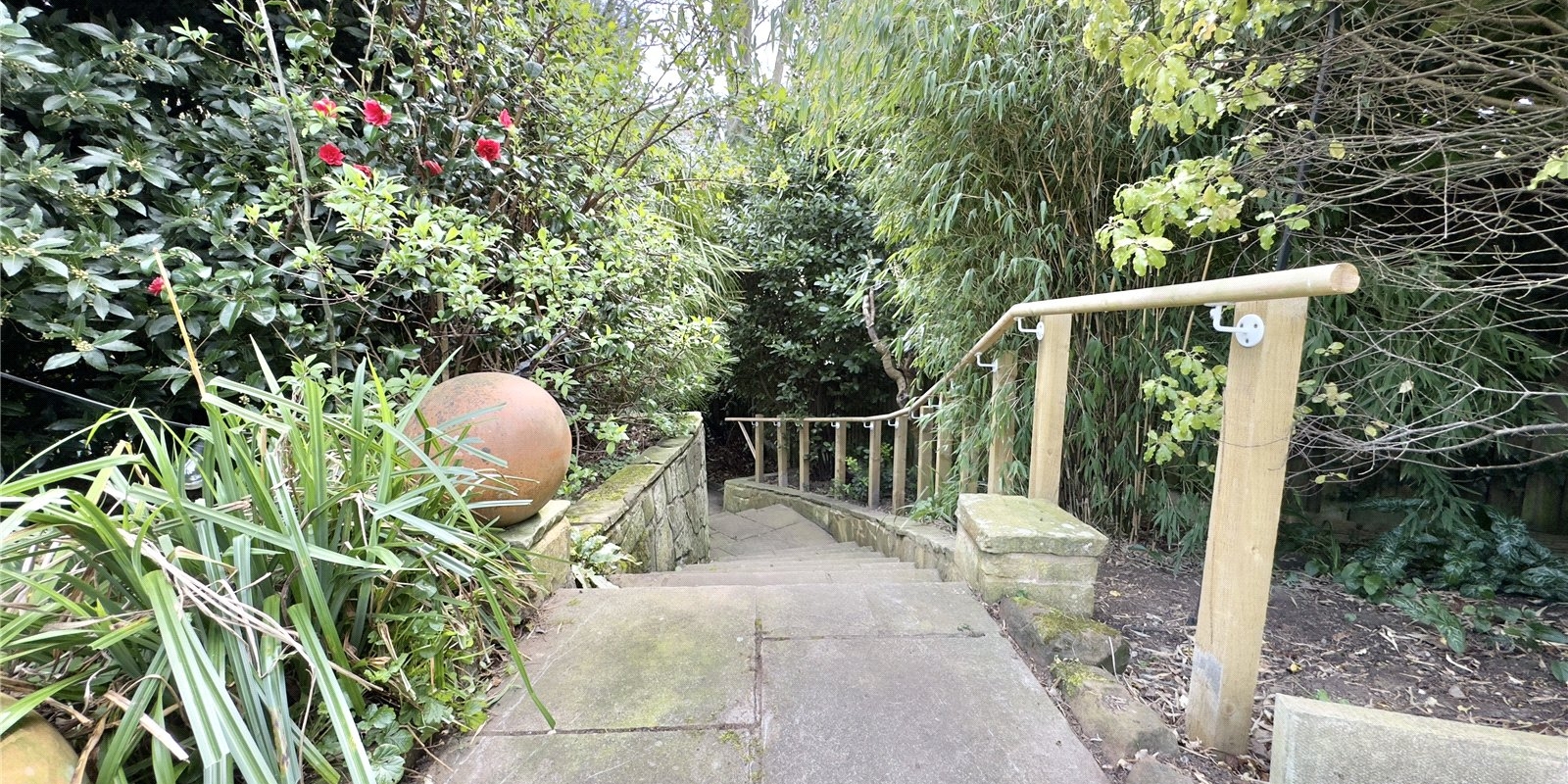 At the rear of the property, you’ll find a beautifully maintained flagged patio garden with a feature pond, and a hidden paved patio garden offering a private retreat. The former garage has been cleverly converted into office space, and there’s also a large summer house and storage shed, providing excellent versatility and storage.