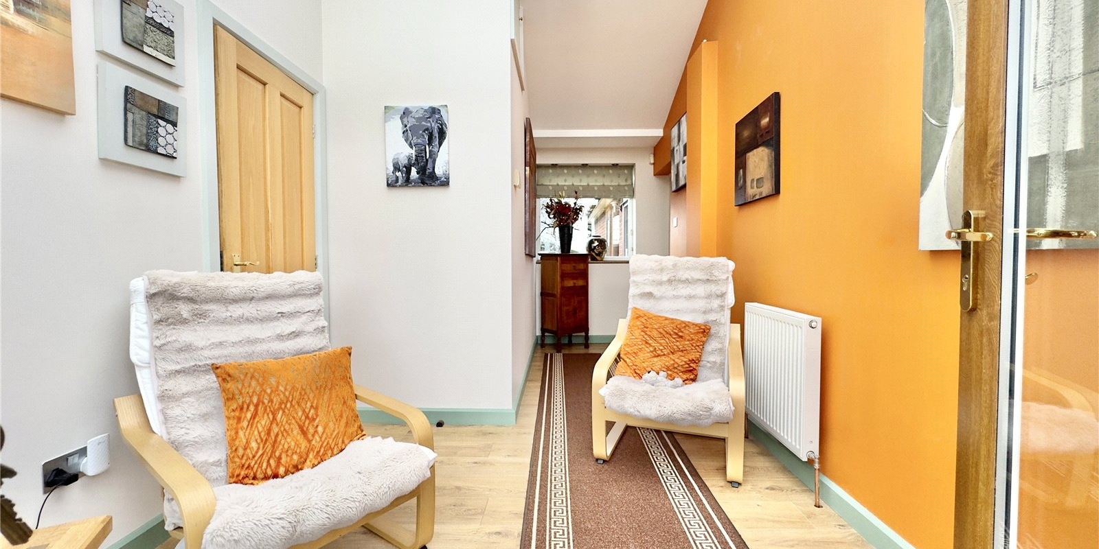 Upon entering the property, you are welcomed by a bright and spacious hallway enhanced by ceiling windows that allow natural light to flood the space. To the left of the hallway is a versatile reception room which could easily be used as a fourth bedroom, benefitting from the added convenience of an en-suite shower room. To the right is a generous second reception room with sliding doors leading out to the garden, creating a lovely connection between the indoor and outdoor spaces.