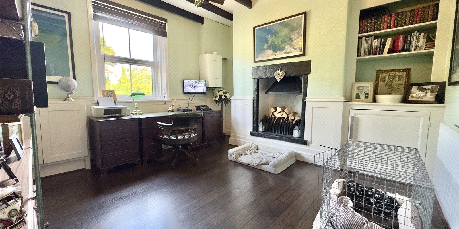 Externally, the property benefits from substantial outbuildings, including one with planning permission for a separate annex—offering exciting potential for multi-generational living, guest accommodation, or even commercial use. The double garage is currently being used as a home gymnasium complete with sauna. The current owners have successfully operated a canine-focused business from the grounds, highlighting the versatility and scope this unique home provides.