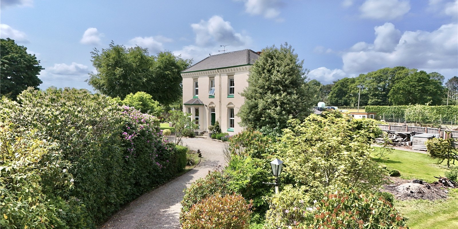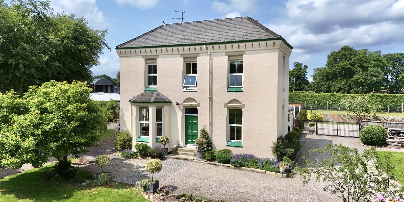 Occupying an impressive 1.17-acre plot (approx. 51,000 sq. ft.), this exceptional Georgian detached property enjoys a secluded position within the sought-after rural surroundings of Childer Thornton, Cheshire. Accessed via two sweeping driveways with automated gate access, the home is set back behind expansive lawned gardens with mature trees and a charming orchard area, all beautifully landscaped to create a truly stunning setting.