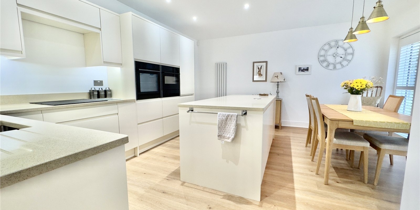 Offering five spacious bedrooms and three contemporary bathrooms, this stylish family home provides generous living space with an immaculate finish throughout. The open-plan kitchen is a true centrepiece, featuring high-end appliances and a sleek design that’s perfect for both everyday living and entertaining.
