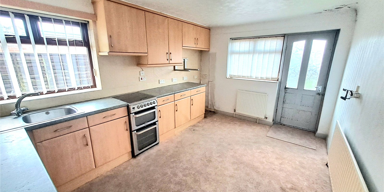 Offered for sale with no onward chain, the accommodation includes a spacious hallway, a good-sized lounge, and a kitchen diner with plenty of potential. There are two double bedrooms, both featuring fitted wardrobes, and one also benefits from a private WC. A separate bathroom completes the internal layout.