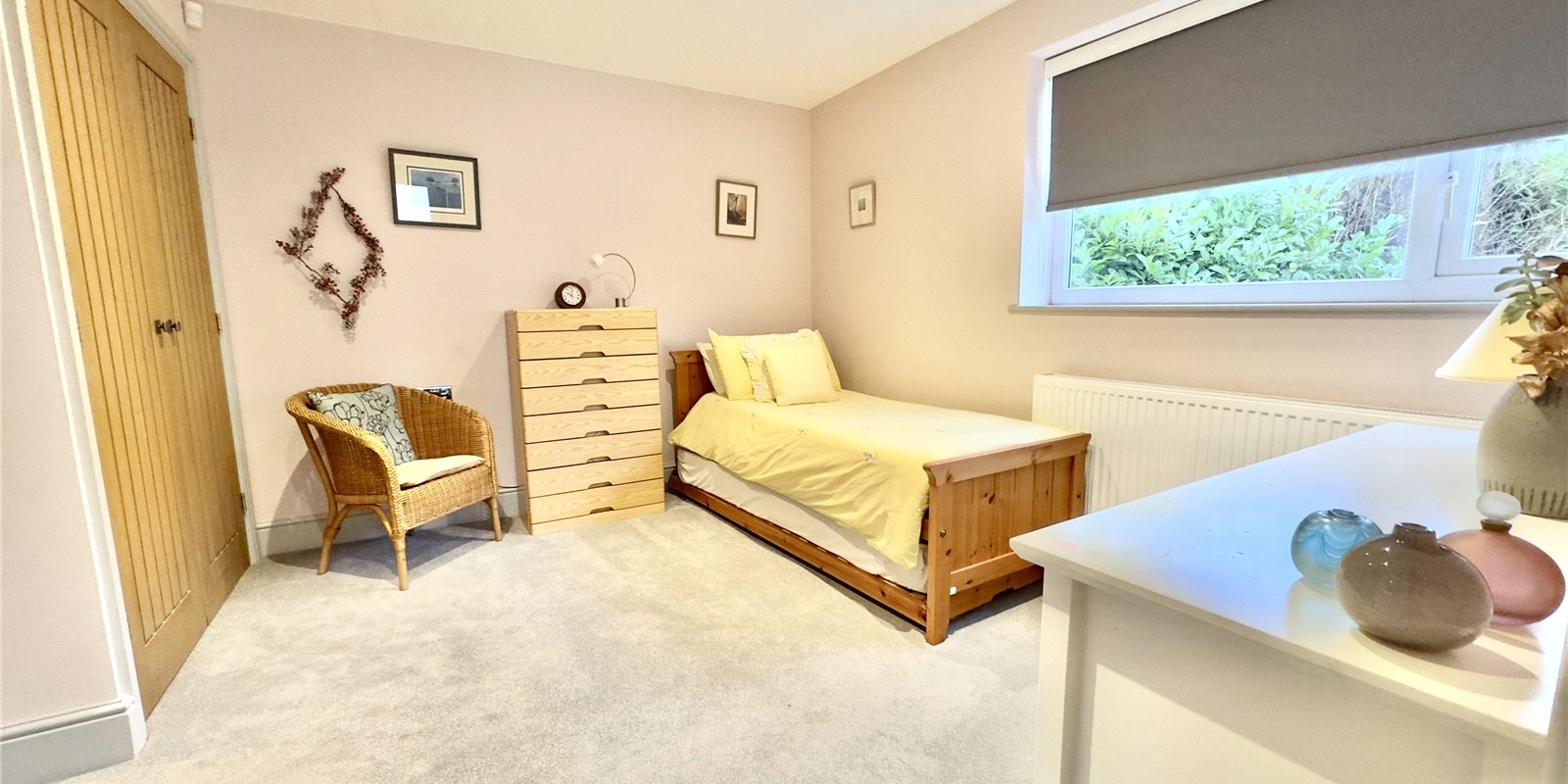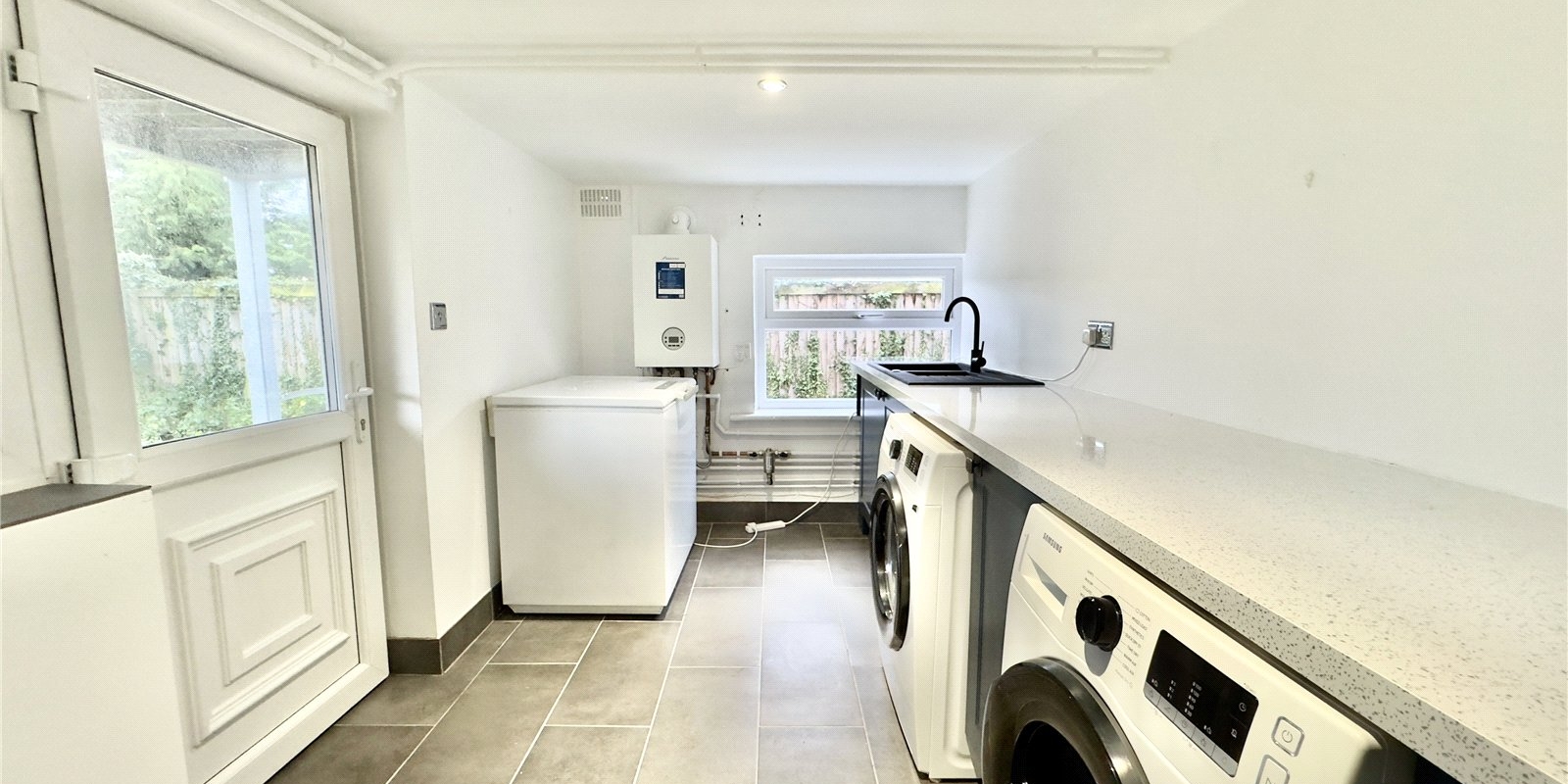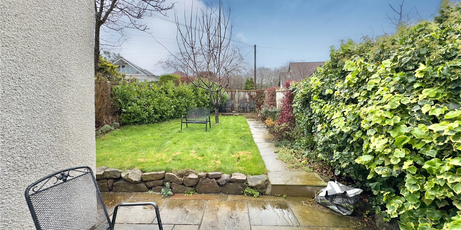 Externally, the property benefits from a three-car driveway, while beneath the living area there is a garage and a useful utility room. The rear garden is private and well established, featuring an elevated seating area surrounded by lawn and mature shrubbery, along with a lower-level lawned section which provides access to the utility area.