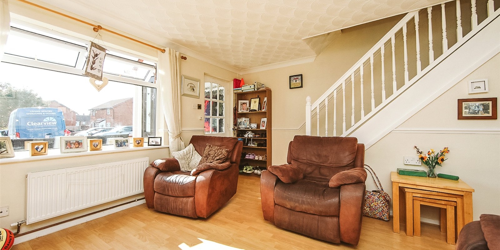 The spacious lounge at the front of the property offers a warm, welcoming atmosphere for relaxing evenings.