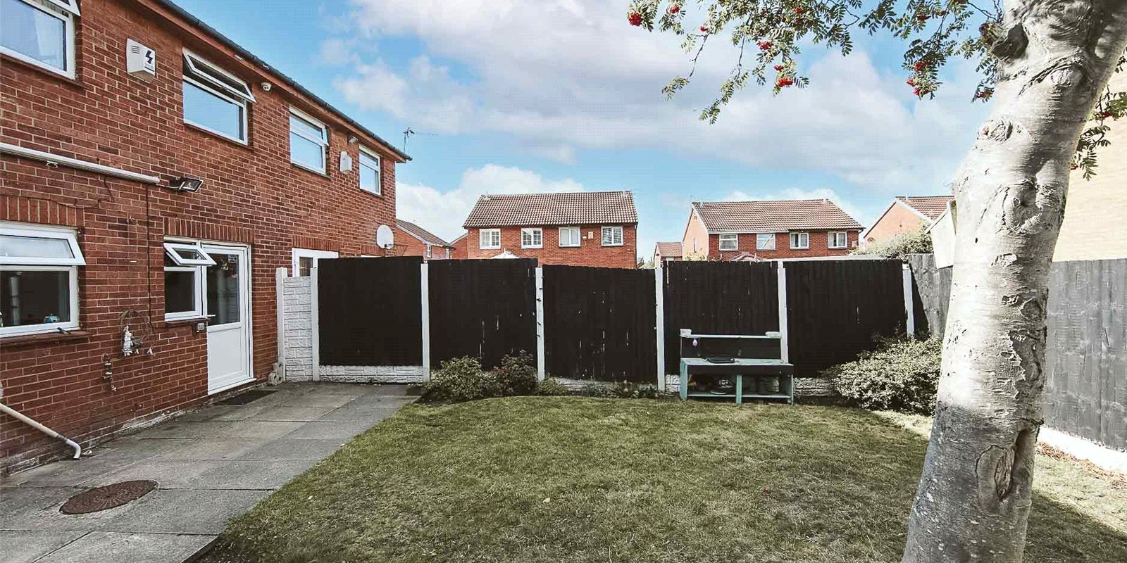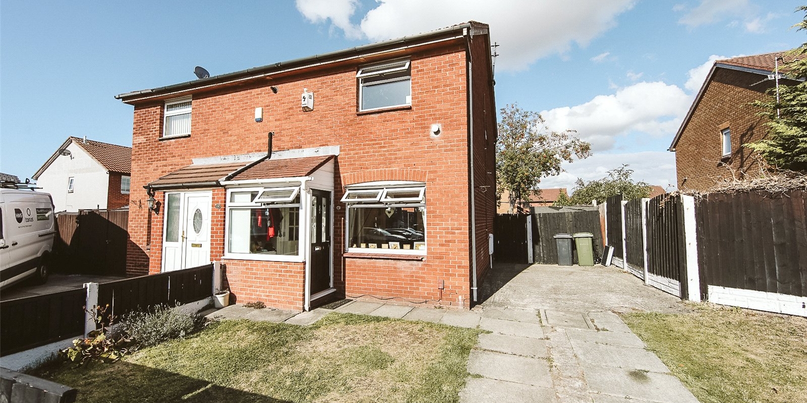 The rear garden is fully enclosed, ideal for pets or children, while the front garden adds curb appeal and privacy. A driveway to the side provides convenient off-road parking.