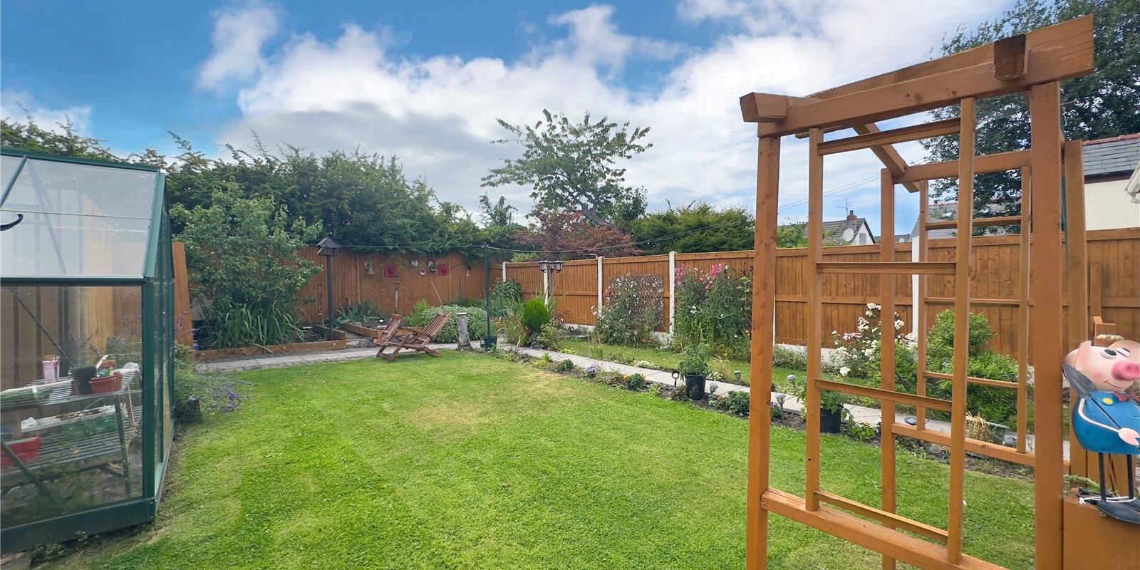 Externally, the property is equally impressive, with a large driveway providing off-road parking and a neatly maintained lawn area to the front. Gated side access leads to the rear, where you'll find a large, sunny garden that enjoys a private aspect. The garden is laid to lawn with a patio area and borders with an array of plants and shrubs, offering a peaceful outdoor space to unwind.