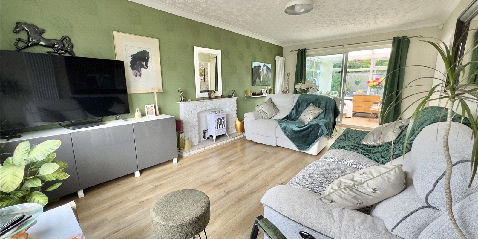 The conservatory, overlooking the well-maintained rear garden, provides the perfect setting for family dining, a playroom, or a quiet retreat to relax in natural light. The ground floor layout is practical, versatile, and perfect for modern living.