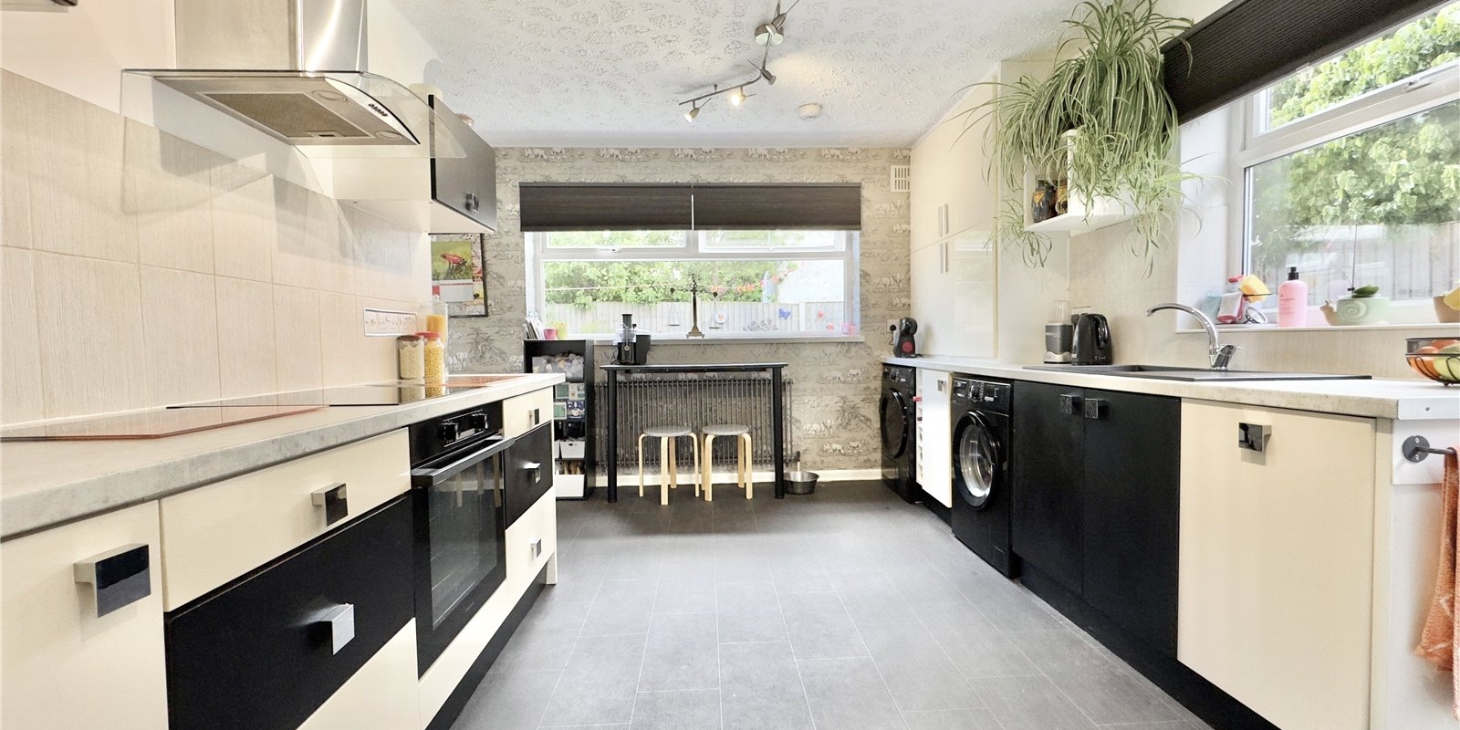 Upstairs, you'll find three well-proportioned bedrooms, all decorated with a stylish design and offering plenty of space for beds, wardrobes, and desks. The impressive family bathroom is a standout feature, boasting a modern suite with both a bathtub and a separate walk-in shower—ideal for busy mornings and relaxing evenings alike.