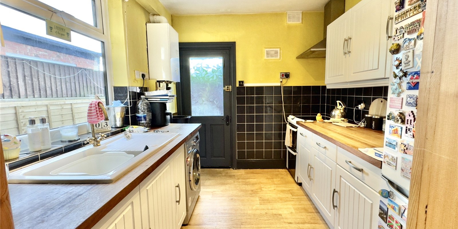 The kitchen sits to the rear of the home and provides a practical and functional layout, with plenty of room for culinary creativity. From here, a door leads out to the rear, making outdoor access simple and convenient.