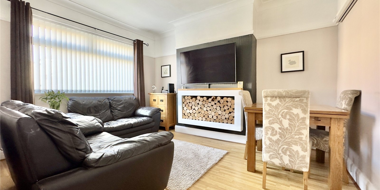 The property benefits from two well-proportioned reception rooms, both separate from the kitchen, offering flexible living space to suit a variety of needs. The main living room is bright and inviting, complete with a feature fireplace and large window allowing plenty of natural light to flood the room.