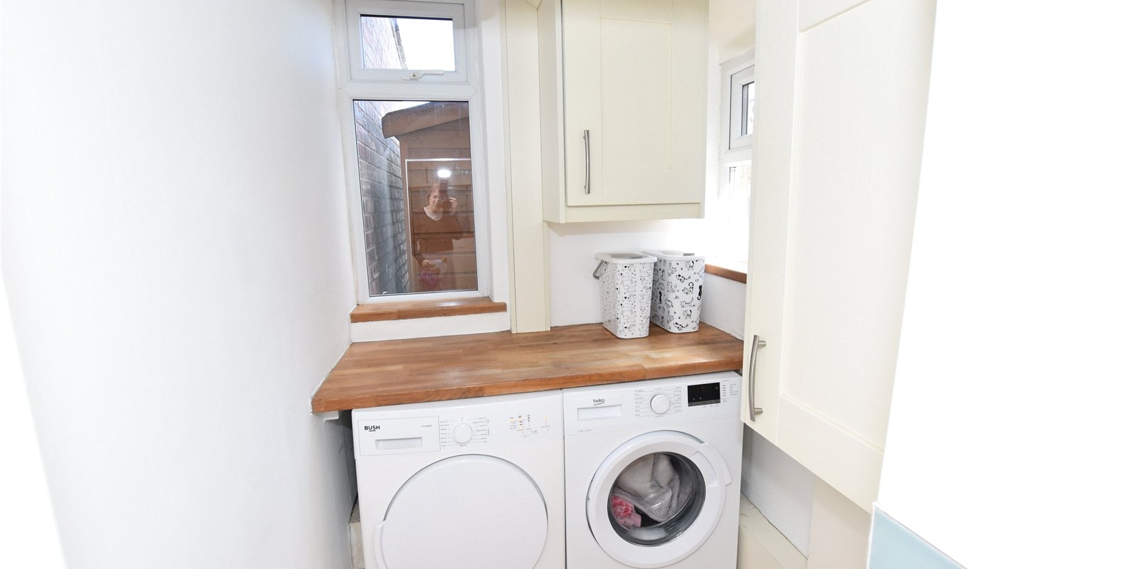 The kitchen is both practical and well-appointed, offering generous workspace and storage, while the addition of a separate utility room and outhouse ensures functionality without compromising on style.