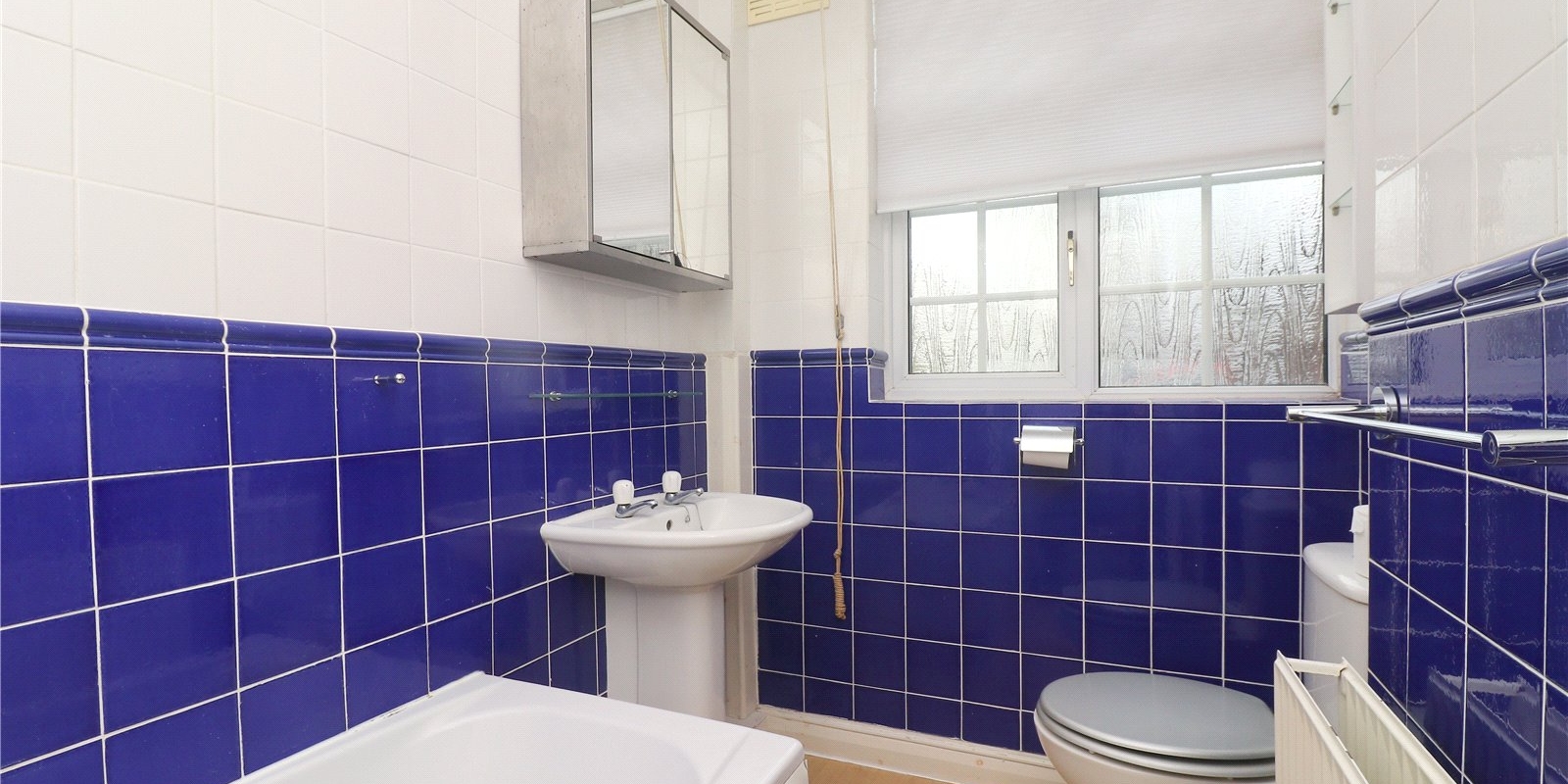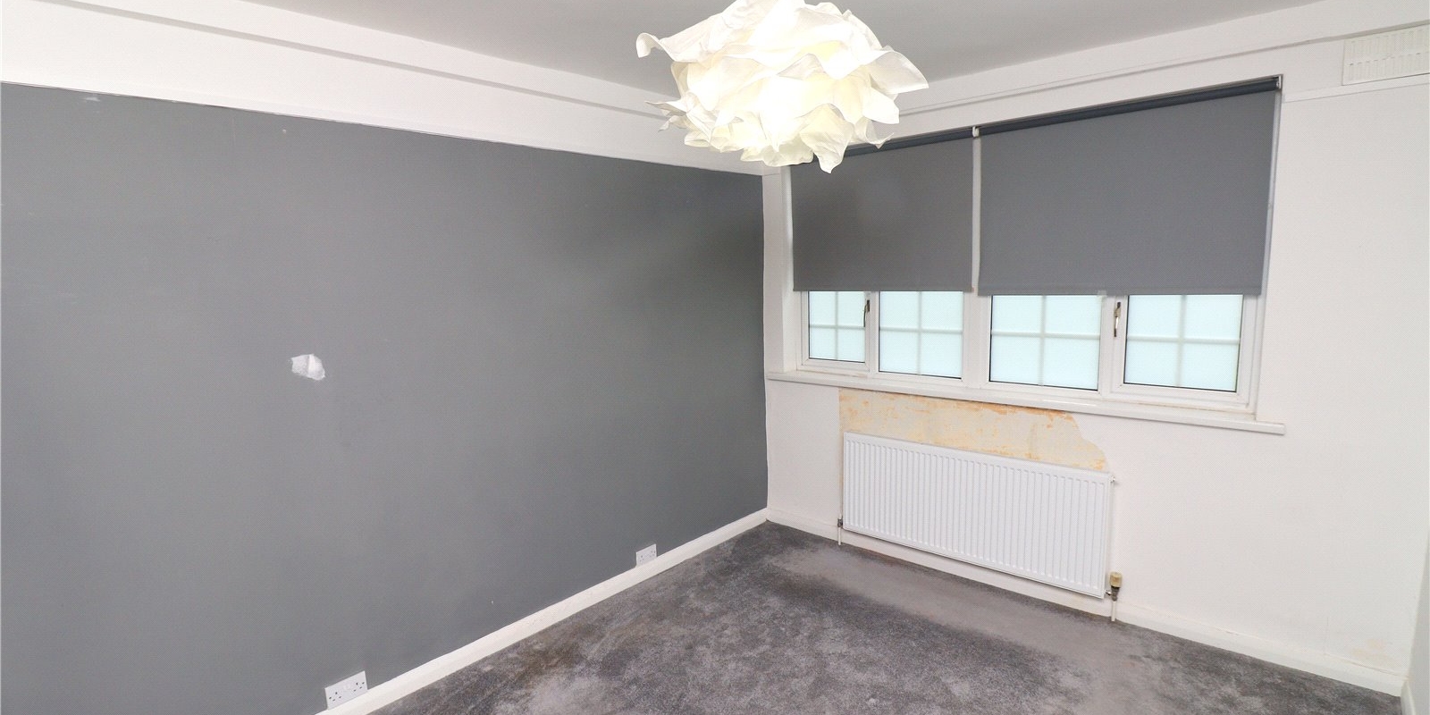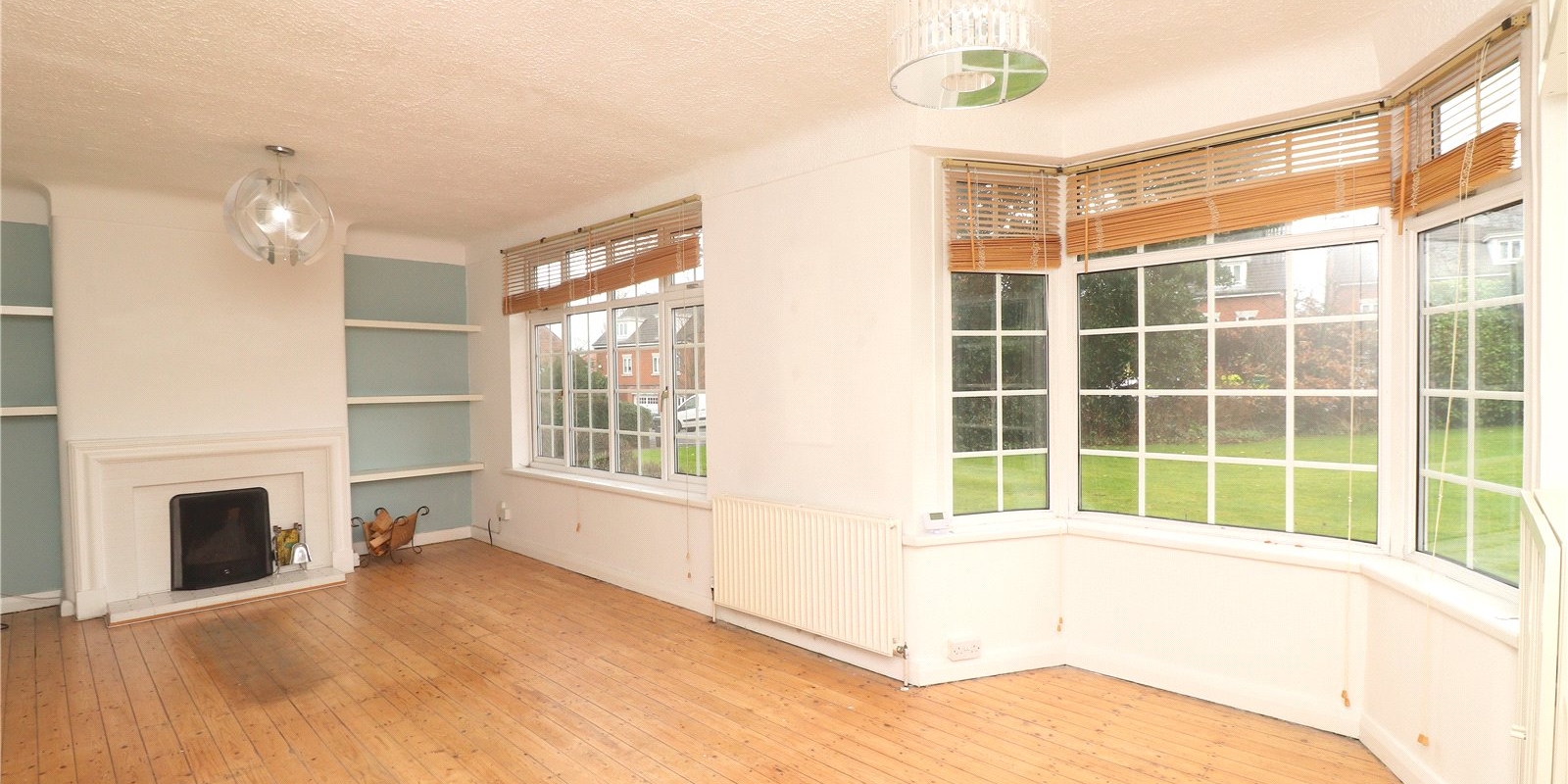 Upon entering the property you're greeted by a hallway with storage space to the right and the kitchen in front. The kitchen has ample counter and cupboard space for all your culinary needs and is also home to the boiler, as this flat is equipped with a central heating system. The lounge/diner is an open plan space with hardwood flooring and bay windows, flooding the room with natural light. Off the living room to the rear, is another hallway connecting the two bedrooms and the family bathroom that services the flat.