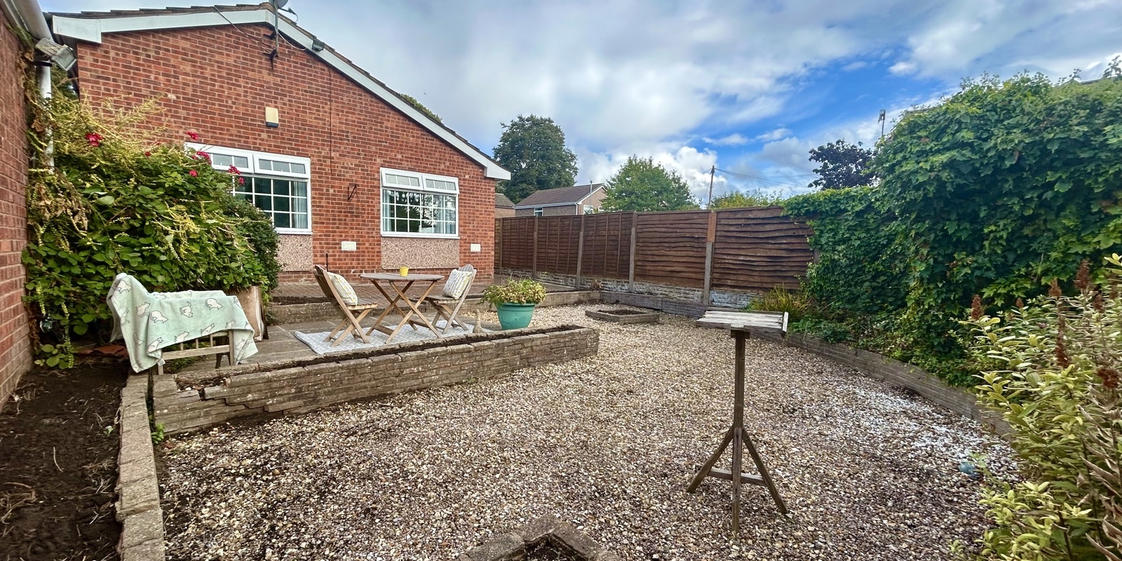 Externally, the property boasts an extended driveway leading to a detached garage, providing ample parking. The low-maintenance garden areas to the front and rear are ideal for those who enjoy outdoor space without the upkeep.