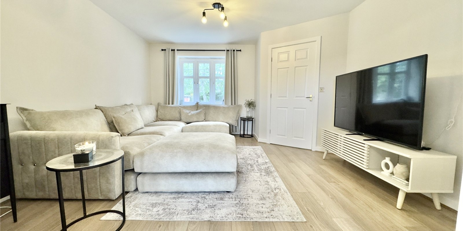 The welcoming entrance hallway leads through to a bright and spacious lounge, while the rear of the property enjoys an impressive open-plan kitchen and dining room, perfect for family life and entertaining alike. There is also a downstairs WC.