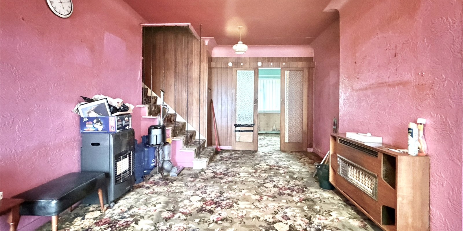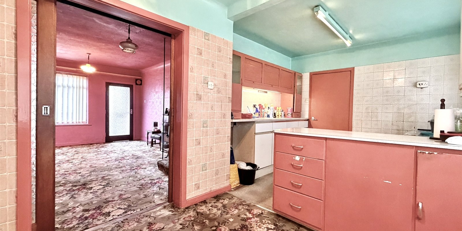 This well-proportioned home offers fantastic potential for modernisation and is perfect for buyers looking to create a long-term family home. The accommodation begins with a welcoming porch leading into a bright lounge, with stairs rising to the first floor. To the rear, sliding doors open into a generous open-plan kitchen and dining space, providing an excellent footprint for contemporary living and entertaining.