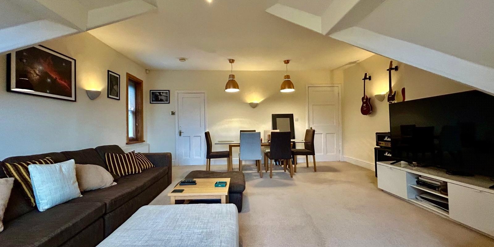 The apartment is accessed via a well-maintained communal entrance and benefits from a secure gated car park, adding both convenience and peace of mind. Internally, the accommodation is centred around a large and impressive lounge/dining space, flooded with natural light and perfectly positioned to take in the elevated outlook.
