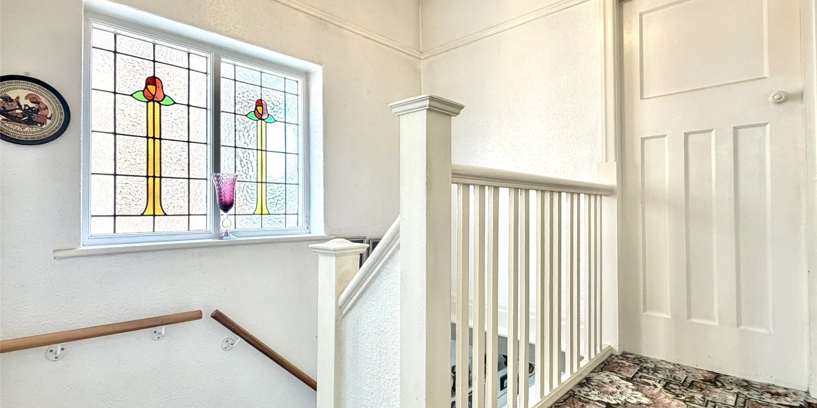 This charming property retains a wealth of original features, including beautiful leaded stained glass windows, giving a nod to its period heritage. The accommodation begins with a generous entrance hallway, leading through to two well-proportioned reception rooms, ideal for both family living and entertaining, along with a kitchen to the rear.