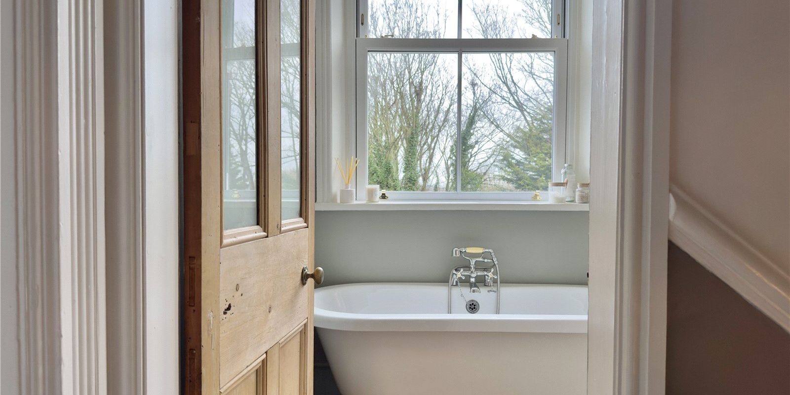 The principal bedroom is a luxurious retreat, benefitting from a generous four-piece en-suite complete with a feature roll-top claw-foot bath. Two additional family bathrooms are thoughtfully positioned on the half landings, serving five further exceptionally spacious bedrooms, with the top-floor rooms offering particularly grand proportions.